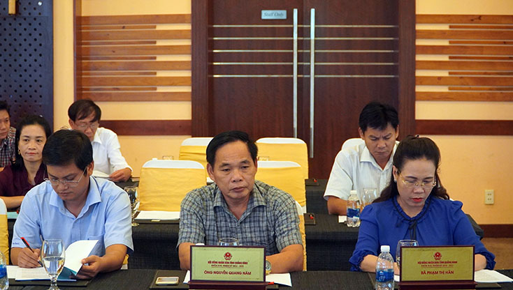 Các đồng chí: Nguyễn Công Huấn, Ủy viên Ban Thường vụ Tỉnh uỷ, Phó Chủ tịch thường trực HĐND tỉnh; Nguyễn Lương Bình, Tỉnh ủy viên, Phó Chủ tịch HĐND tỉnh đồng chủ trì Hội nghị. Tham dự hội nghị có đồng chí Trần Hải Châu, Uỷ viên Ban Thường vụ Tỉnh uỷ, Trưởng Ban Nội chính Tỉnh ủy, Trưởng Ban Pháp chế HĐND tỉnh; đồng chí Phạm Thị Hân, Ủy viên Ban Thường vụ Tỉnh ủy, Chủ tịch UBMTTQ Việt Nam tỉnh, Trưởng Ban Văn hóa - Xã hội HĐND tỉnh; các đồng chí Thường trực HĐND tỉnh, lãnh đạo các Ban HĐND tỉnh; đại diện lãnh đạo UBND tỉnh; Lãnh đạo Văn phòng HĐND tỉnh; Thường trực HĐND, các Ban của HĐND và Văn phòng HĐND &UBND các huyện, thị xã, thành phố.
