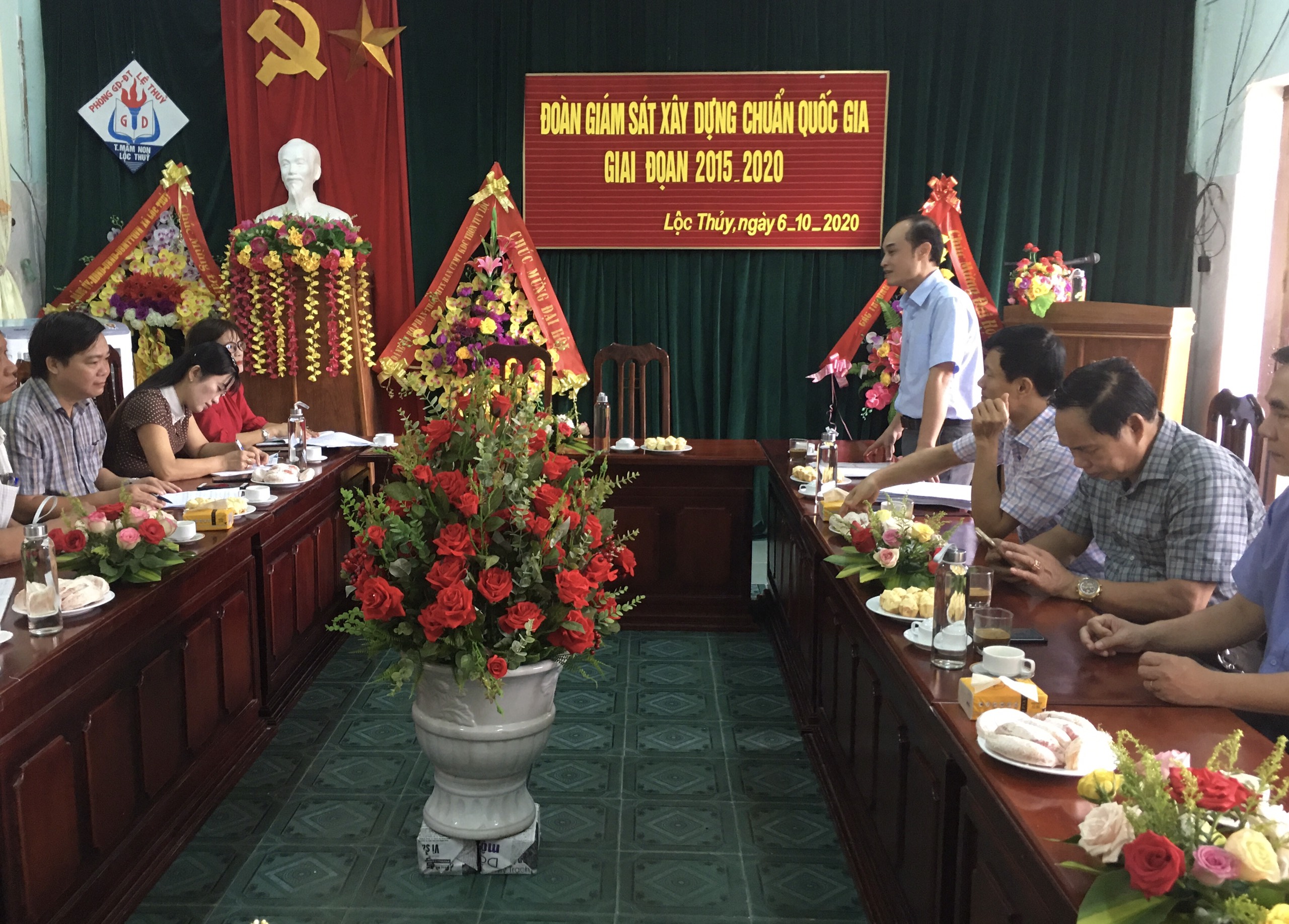 Thực hiện Kế hoạch giám sát chuyên đề “Việc thực hiện xây dựng trường học đạt chuẩn quốc gia giai đoạn 2015 - 2020”, sáng ngày 06/10/2020 Đoàn giám sát của Ban Văn hóa - Xã hội HĐND tỉnh do đồng chí Trần Sơn Tùng, Phó Trưởng Ban Văn hóa - Xã hội chủ trì đã có buổi làm việc với trường Mầm non Lộc Thủy.