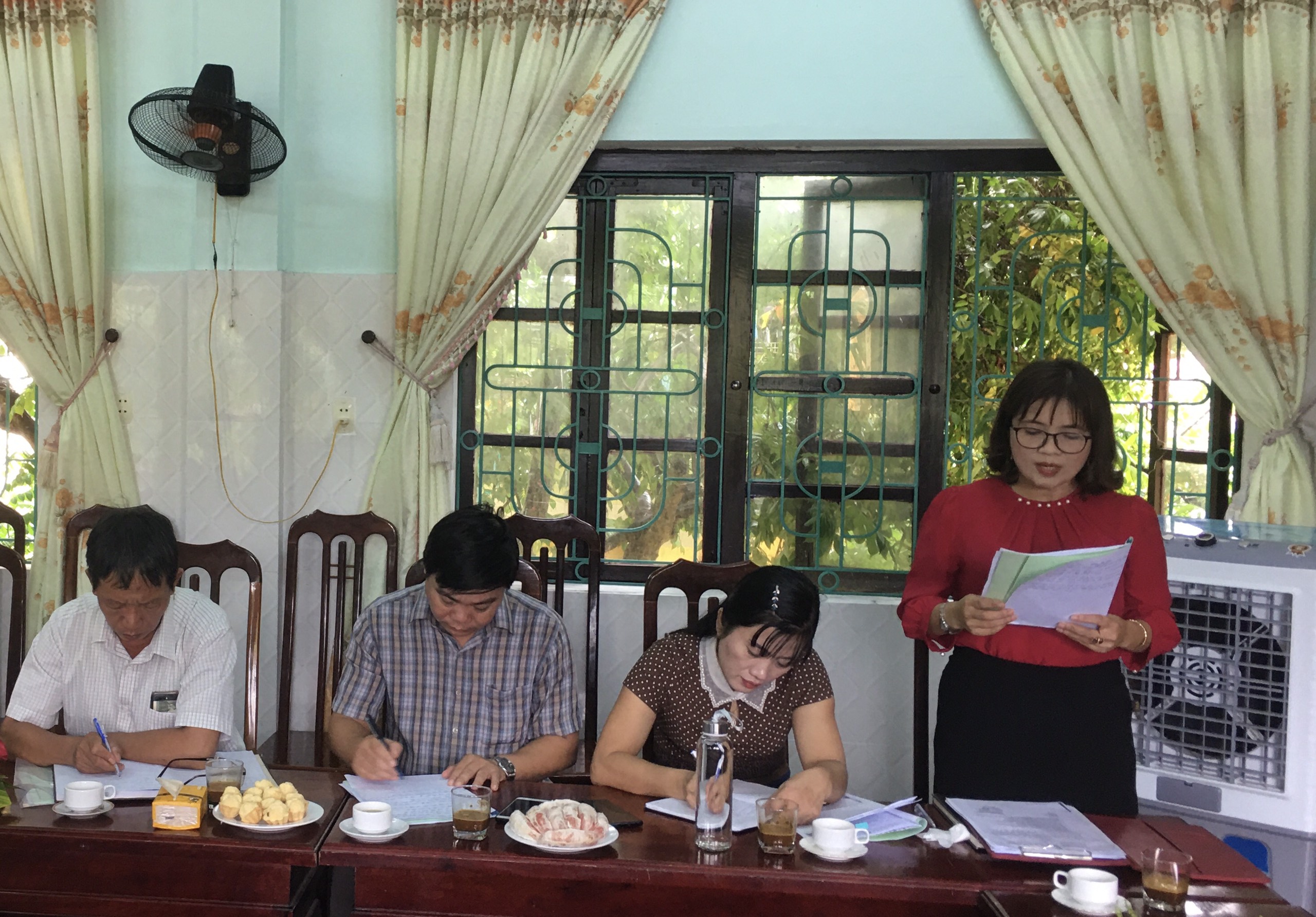 Đồng chí Đỗ Thị Hoài, Hiệu trưởng trường Mầm non Lộc Thủy báo cáo kết quả với Đoàn.