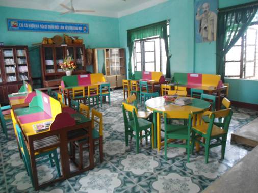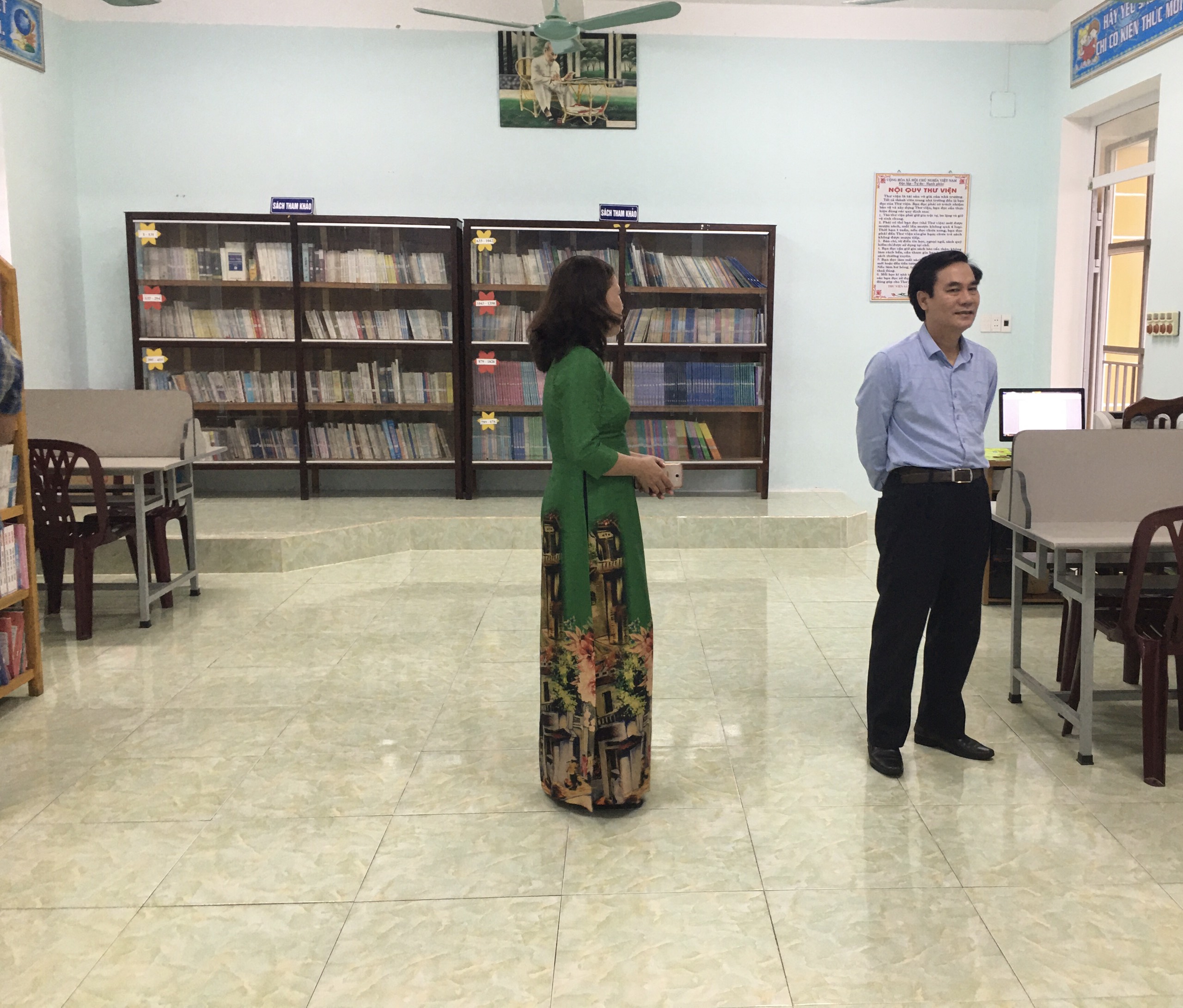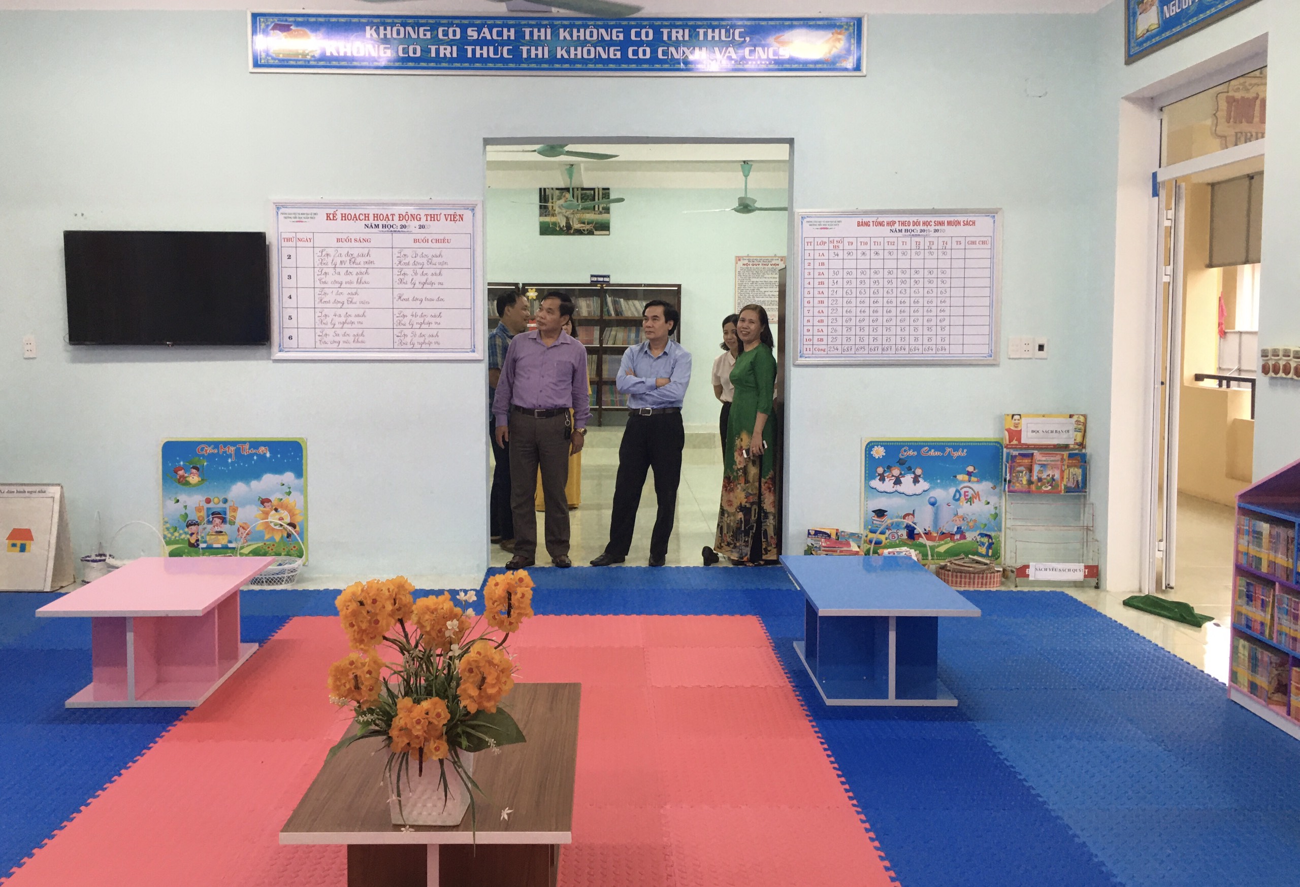Đoàn đi khảo sát thực tế phòng đọc dành cho học sinh.