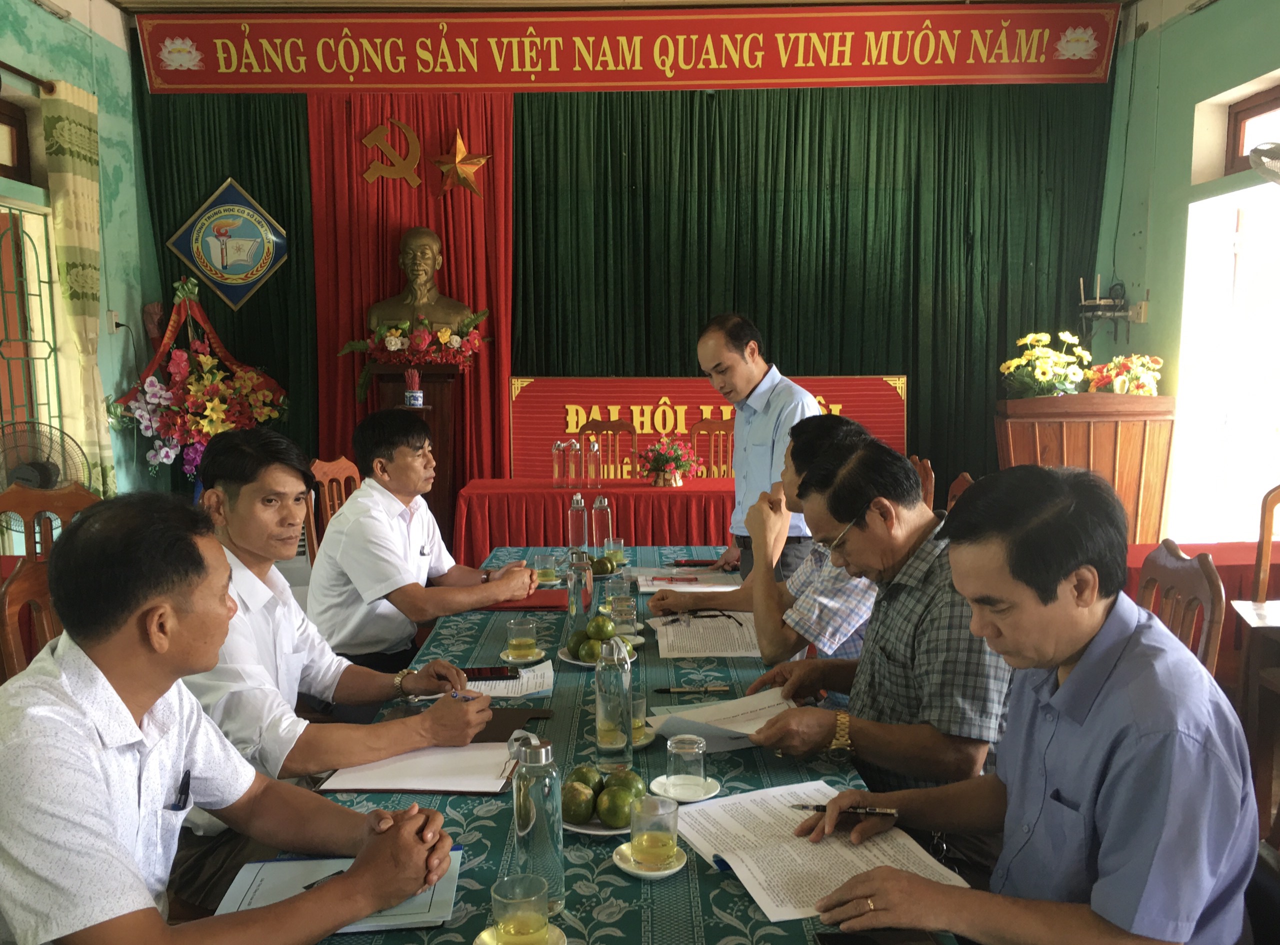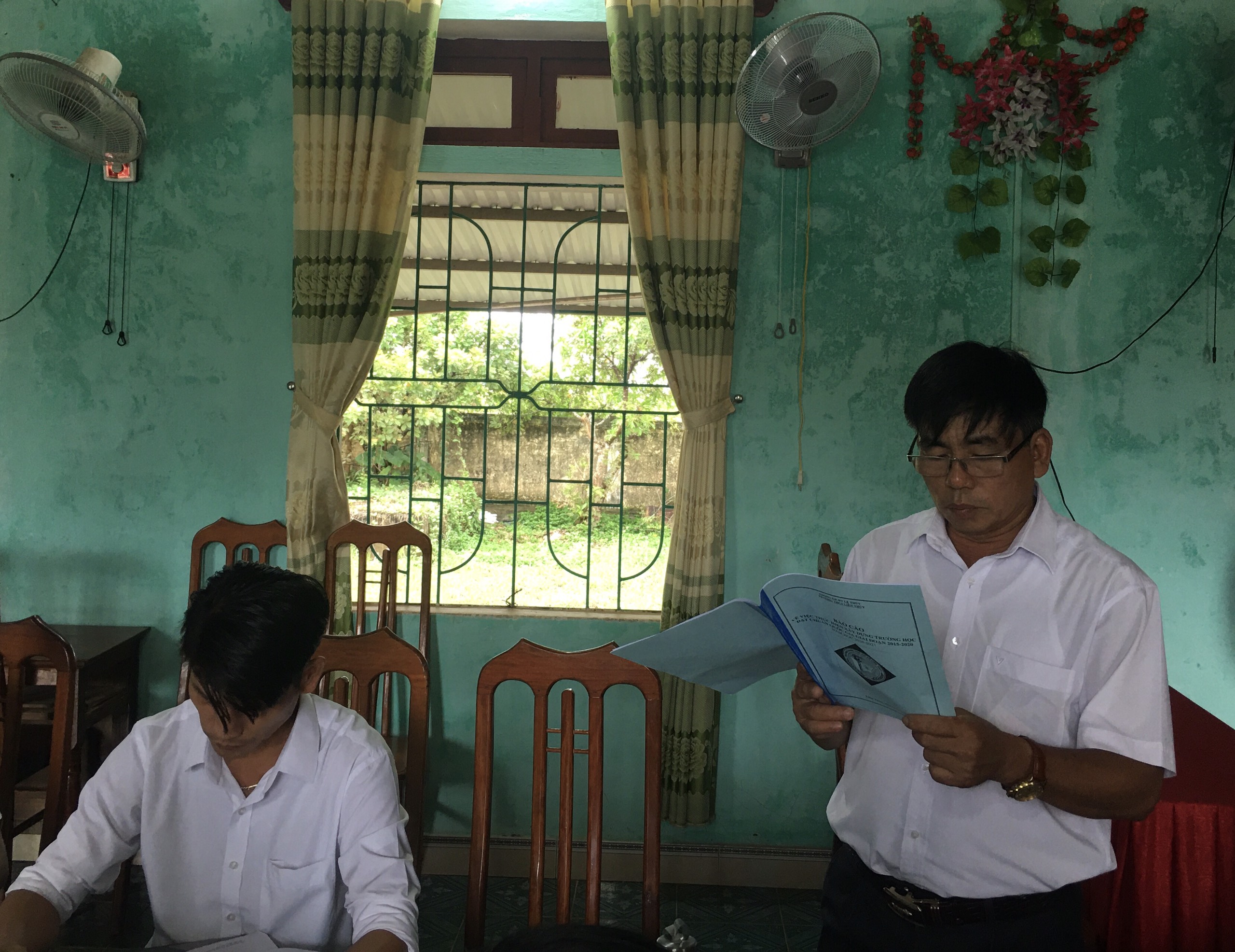 Đồng chí Lê Văn Minh, Hiệu trưởng trường THCS Liên Thủy báo cáo kết quả với Đoàn.