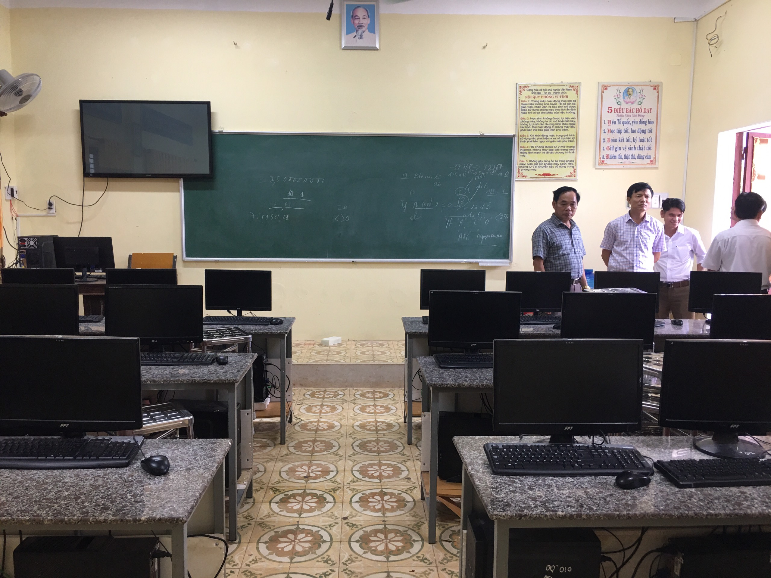 Đoàn khảo sát phòng bộ môn Công nghệ.