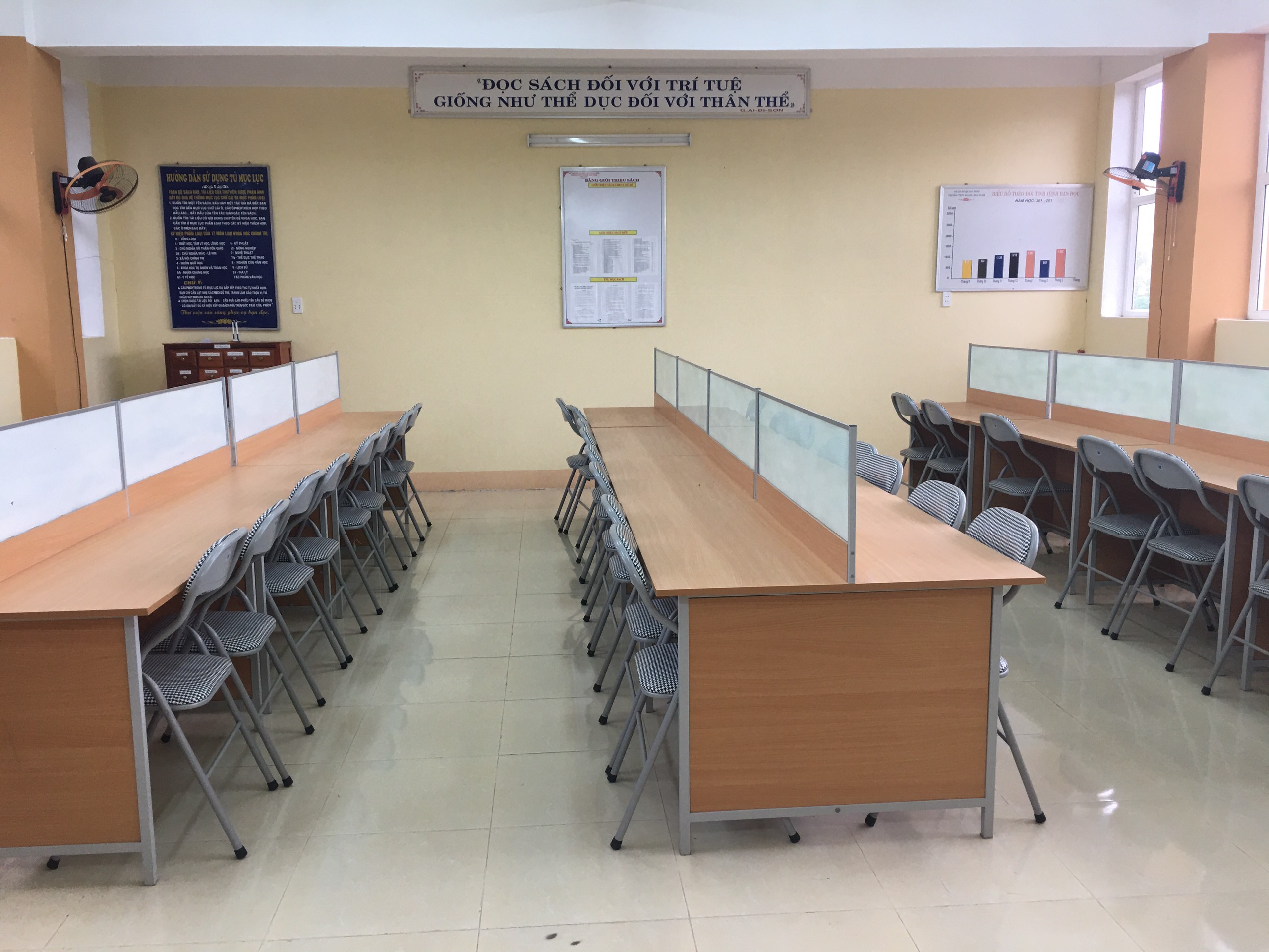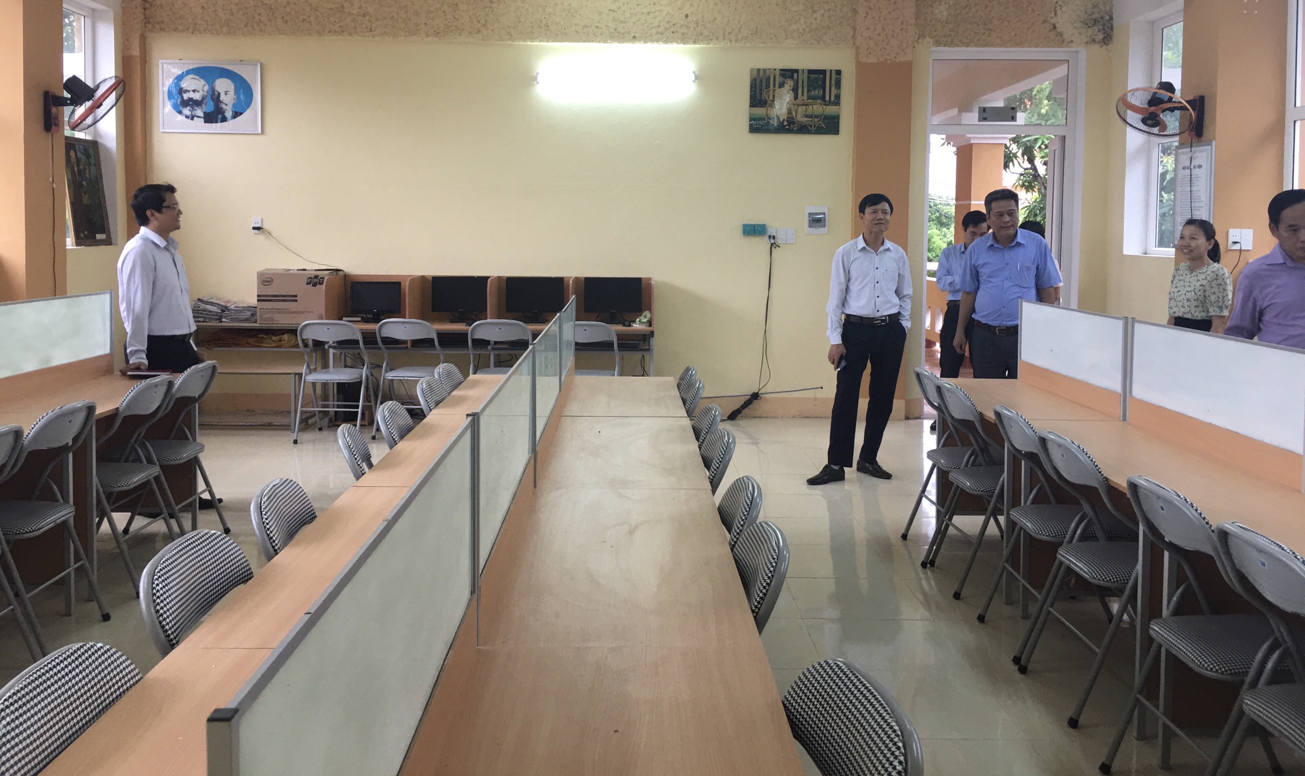 Đoàn kiểm tra thực tế phòng đọc dành cho học sinh.