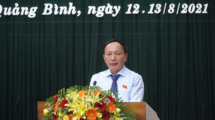 Phát biểu bế mạc kỳ họp, đồng chí Trần Hải Châu, Chủ tịch HĐND tỉnh ghi nhận và đánh giá cao tinh thần, trách nhiệm trước cử tri và toàn thể Nhân dân của các vị đại biểu HĐND tỉnh; sự chuẩn bị công phu, nghiêm túc, trách nhiệm của UBND, các cơ quan liên quan trong quá trình chuẩn bị và tiến hành đối với kỳ họp; đồng thời nhấn mạnh: 7 tháng đầu năm 2021, tỉnh ta triển khai thực hiện nhiệm vụ trong điều kiện gặp rất nhiều khó khăn và thách thức. Đặc biệt, dịch Covid-19 bùng phát trở lại với những diễn biến hết sức phức tạp, đã gây ảnh hưởng tiêu cực đến đời sống kinh tế - xã hội, đe dọa sự an toàn và sức khỏe của Nhân dân trong và ngoài tỉnh. HĐND tỉnh xin chia sẻ với những khó khăn mà con em quê hương Quảng Bình đang sinh sống, lao động, học tập ở các tỉnh phía Nam cùng đồng bào trên cả nước đang phải đối mặt. HĐND tỉnh luôn quan tâm, dõi theo và đồng hành cùng bà con vượt qua đại dịch, phấn đấu không để ai bị bỏ lại phía sau. Trong những tháng còn lại của năm 2021, bên cạnh những thuận lợi cơ bản, tỉnh sẽ tiếp tục đối mặt với nhiều khó khăn, thách thức, trước mắt là tình hình diễn biến hết sức phức tạp của đại dịch Covid-19. Vì vậy, HĐND tỉnh kêu gọi các cấp, các ngành, Mặt trận, các đoàn thể, các đại biểu HĐND tỉnh và toàn thể Nhân dân trong tỉnh đoàn kết, chung sức, đồng lòng, nỗ lực khắc phục khó khăn, vượt qua thách thức, đổi mới, sáng tạo, với tinh thần quyết tâm cao nhất để thực hiện thành công mục tiêu, nhiệm vụ phát triển kinh tế - xã hội năm 2021 và kế hoạch 5 năm (2021-2025) đã đề ra. Đồng chí đề nghị tập trung vào 5 nhiệm vụ trọng tâm sau: