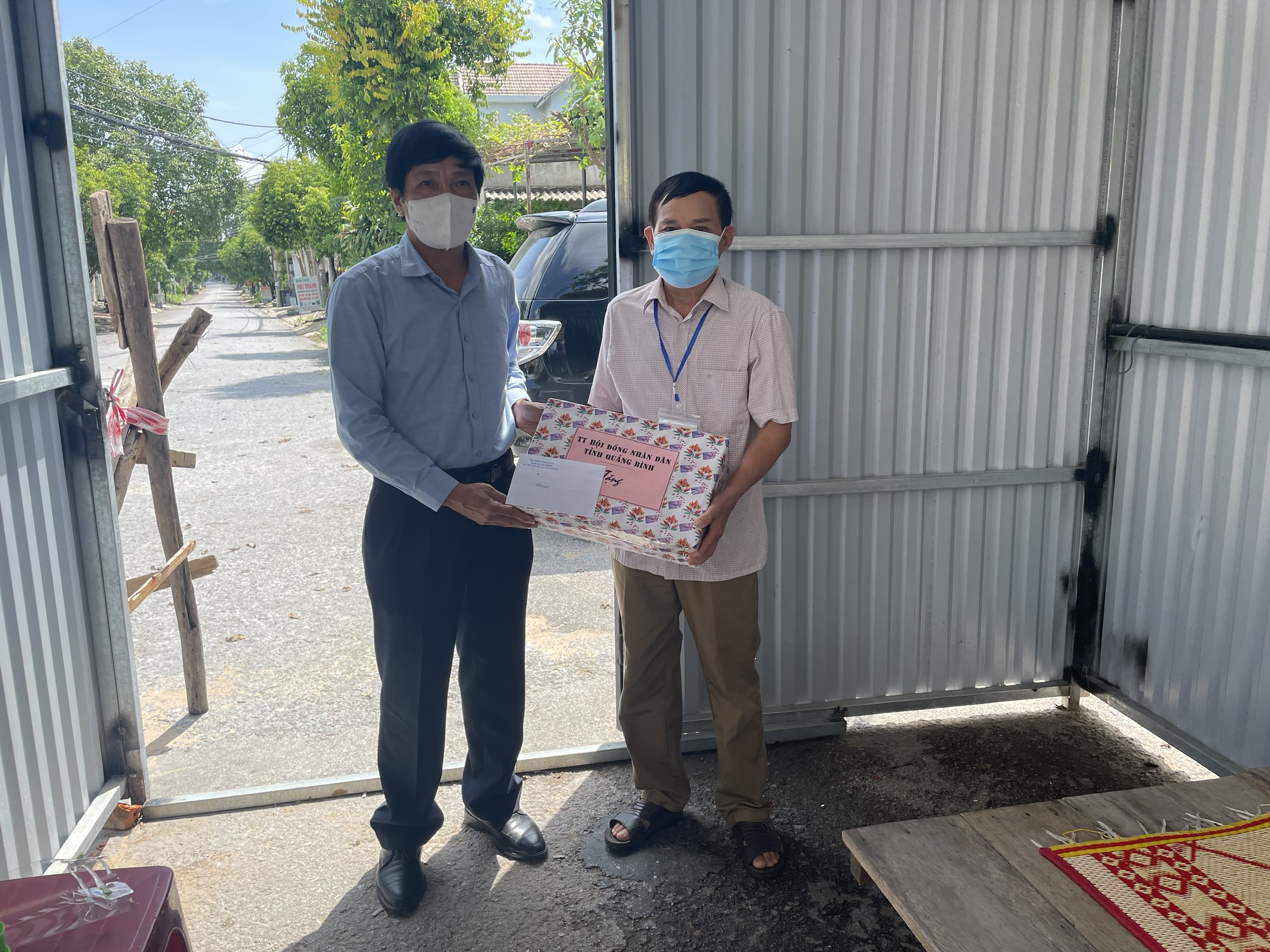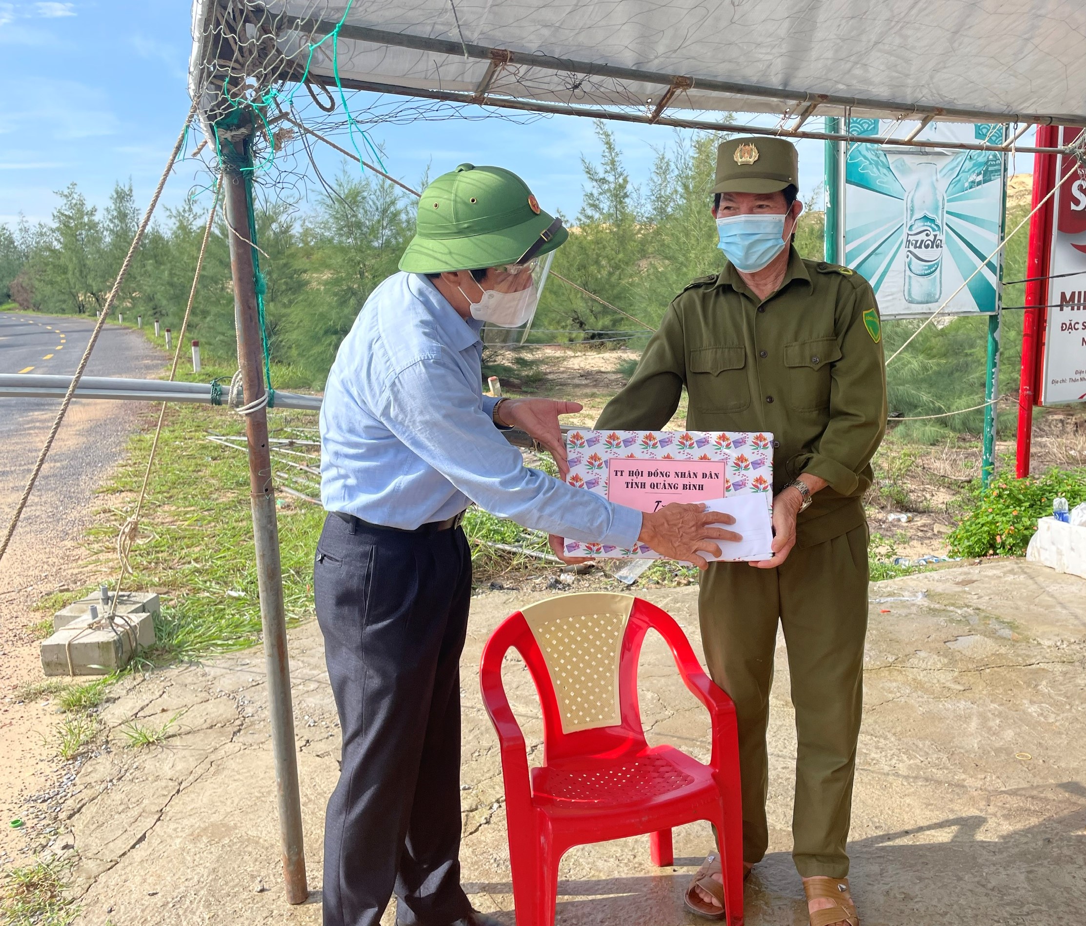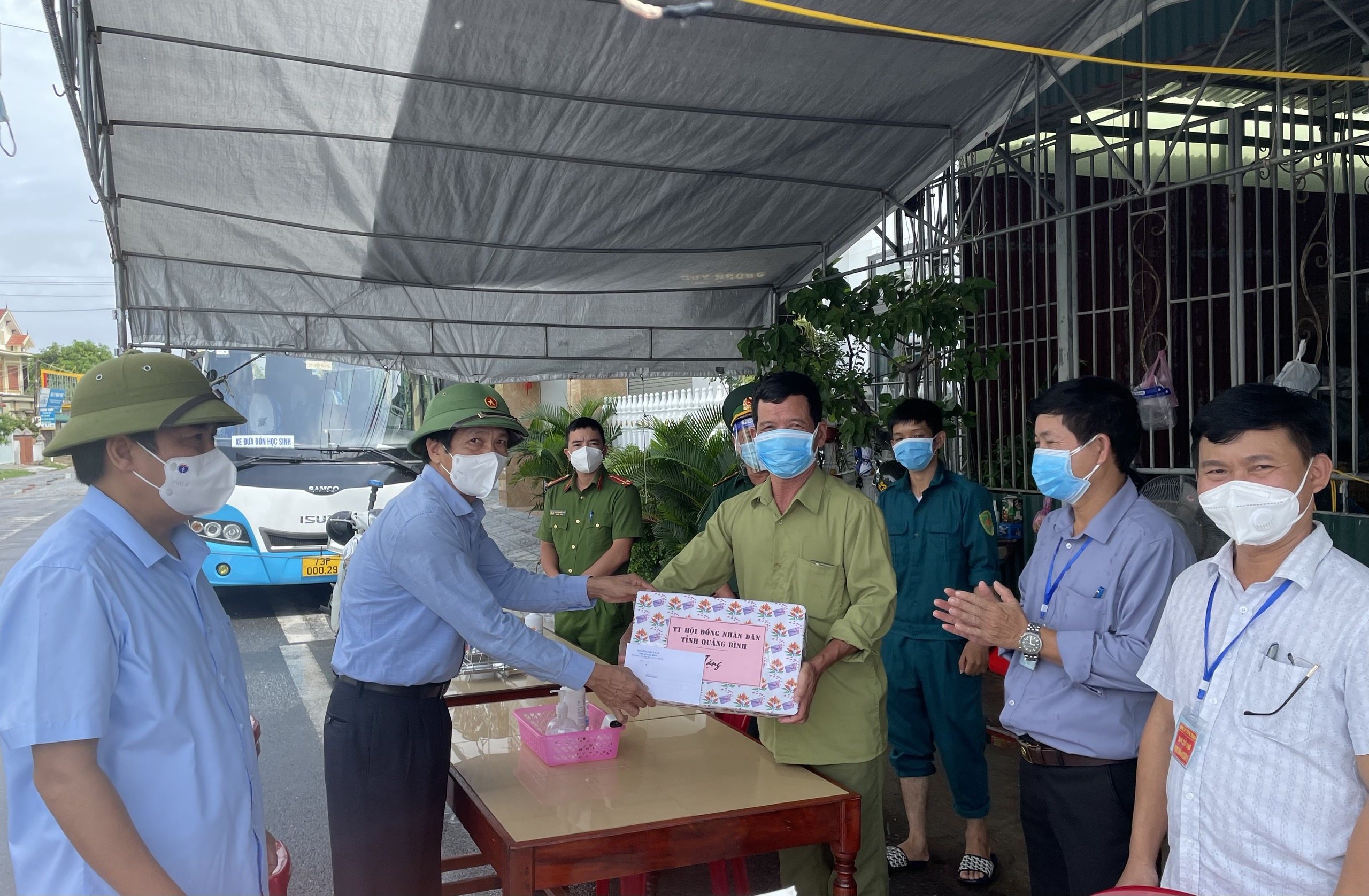 Ảnh: Đồng chí Phó Chủ tịch thường trực HĐND tỉnh thăm và tặng quà tại chốt kiểm soát dịch Covid-19 phường Bắc Lý