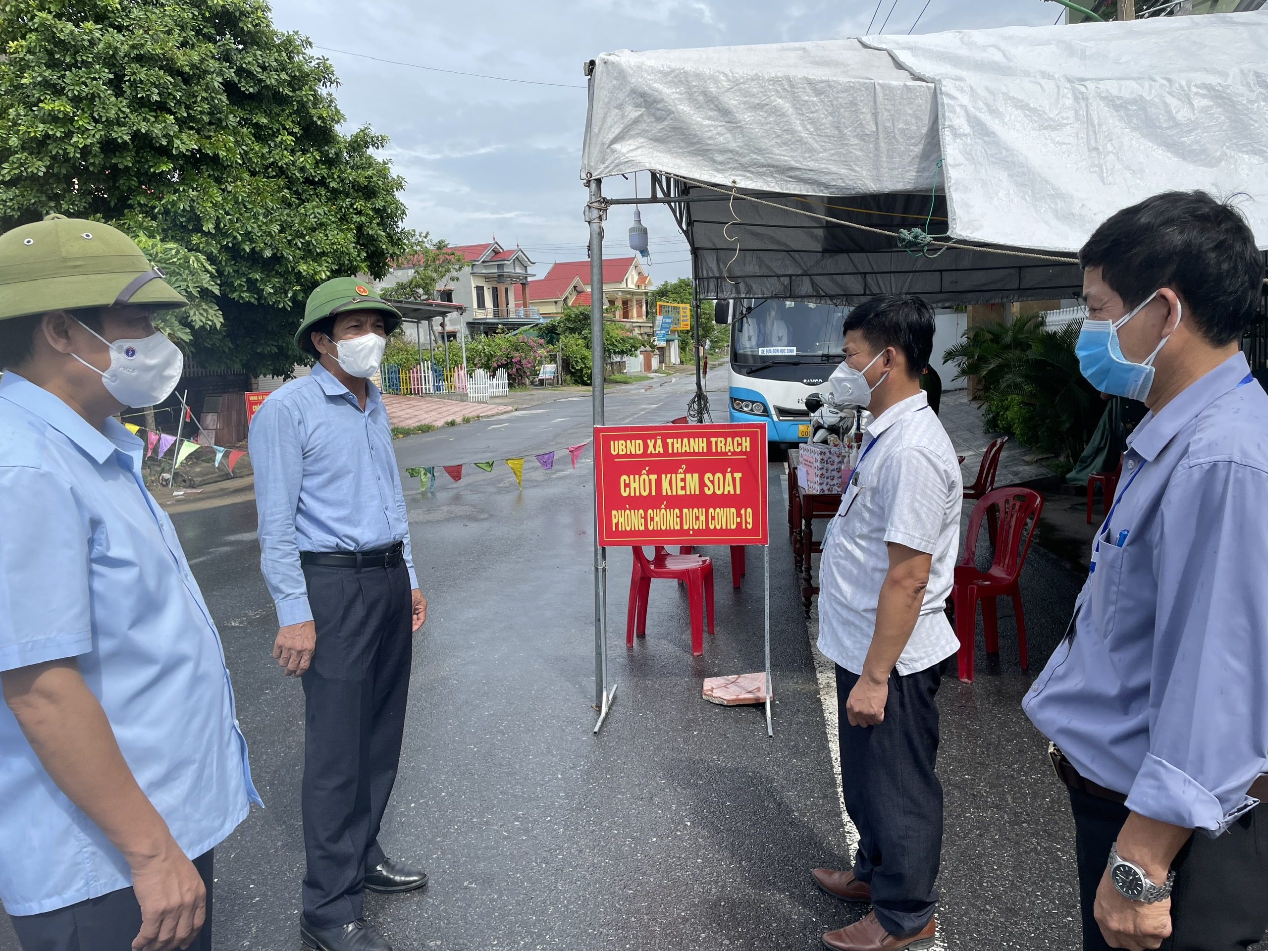 Ảnh: Đồng chí Phó Chủ tịch thường trực HĐND tỉnh thăm và tặng quà tại chốt kiểm soát dịch Covid-19 xã Thanh Trạch