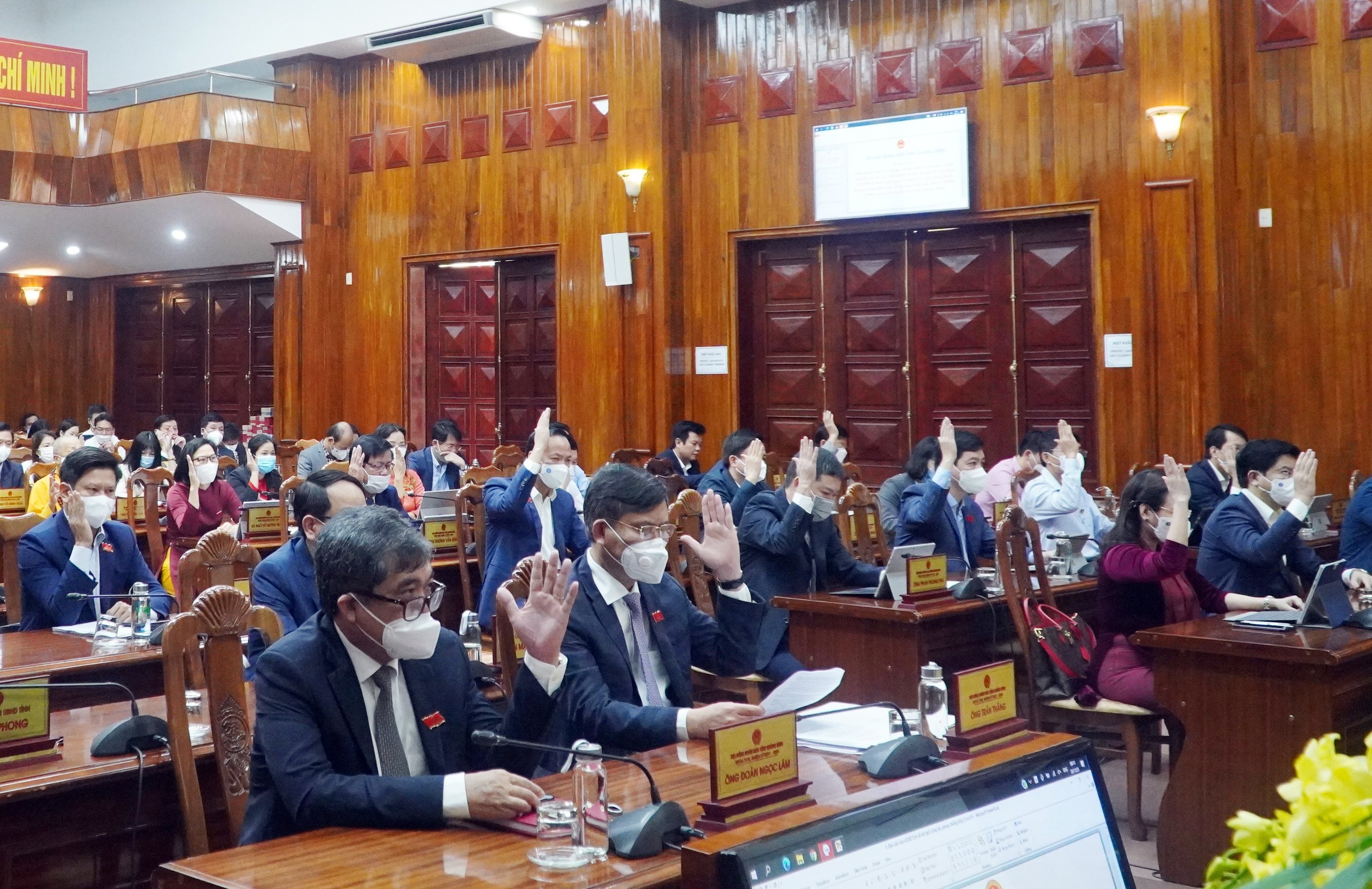 Các đại biểu HĐND tỉnh biểu quyết thông qua các Nghị quyết