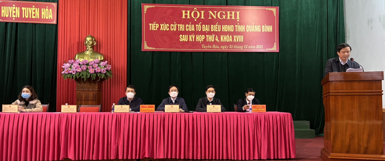 Tại buổi tiếp xúc cử tri, đại diện Tổ đại biểu HĐND tỉnh đã báo cáo tình hình thực hiện nhiệm vụ phát triển kinh tế - xã hội của tỉnh năm 2021; phương hướng, giải pháp thực hiện nhiệm vụ năm 2022 và kết quả kỳ họp thứ 4, HĐND tỉnh khóa XVIII. Cử tri cũng đã được nghe thông báo kết quả giải quyết, trả lời một số kiến nghị mà cử tri huyện Tuyên Hóa gửi trước kỳ họp.