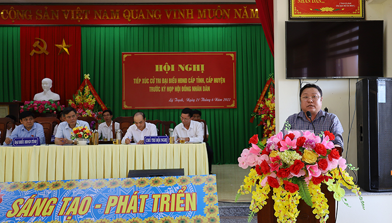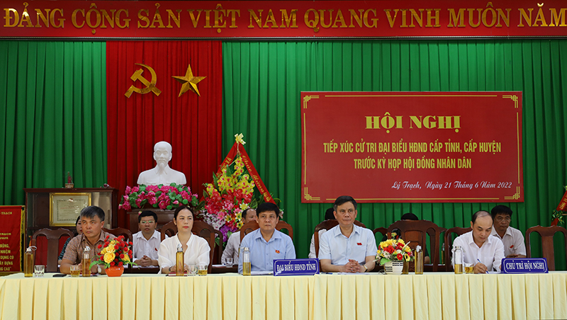 Sáng ngày 21/6/2022, tại xã Lý Trạch (huyện Bố Trạch), tổ đại biểu HĐND tỉnh gồm: Ông Trần Thắng, Phó Bí thư Tỉnh ủy, Chủ tịch UBND tỉnh; ông Lê Công Toán, Tỉnh ủy viên, Bí thư huyện Bố Trạch; ông Trần Sơn Tùng, Phó Trưởng Ban Văn hóa – Xã hội HĐND tỉnh; bà Phan Thị Quyên tiểu thương chợ Hải Phú đã có buổi tiếp xúc với cử tri 14 xã thị trấn trên địa bàn huyện Bố Trạch. Tham dự có đại diện lãnh đạo các sở, ngành, địa phương liên quan.