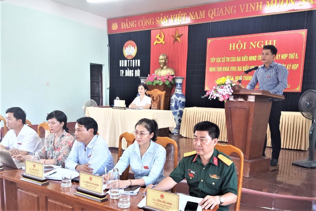 Cử tri thành phố Đồng Hới bày tỏ sự phấn khởi trước những kết quả mà tỉnh đã đạt được sau khi hồi phục nền kinh tế bị ảnh hưởng do dịch Covid-19 trên các lĩnh vực kinh tế, văn hóa, xã hội, quốc phòng - an ninh. Đồng thời, cử tri kiến nghị, đề xuất một số vấn đề, như: đầu tư nâng cấp một số tuyến đường trên địa bàn; cải tạo, phục hồi đảm bảo vệ sinh môi trường, cảnh quan cho hồ Bàu Tró; xem xét việc áp dụng Bảng giá các loại đất giai đoạn 2019-2024 tại một số khu vực, vị trí ở địa bàn phường Hải Thành cho phù hợp với hiện trạng cơ sở hạ tầng của một số tuyến đường; xem xét hỗ trợ chế độ cho chức danh Chủ tịch Hội Cựu thanh niên xung phong các xã, phường;…