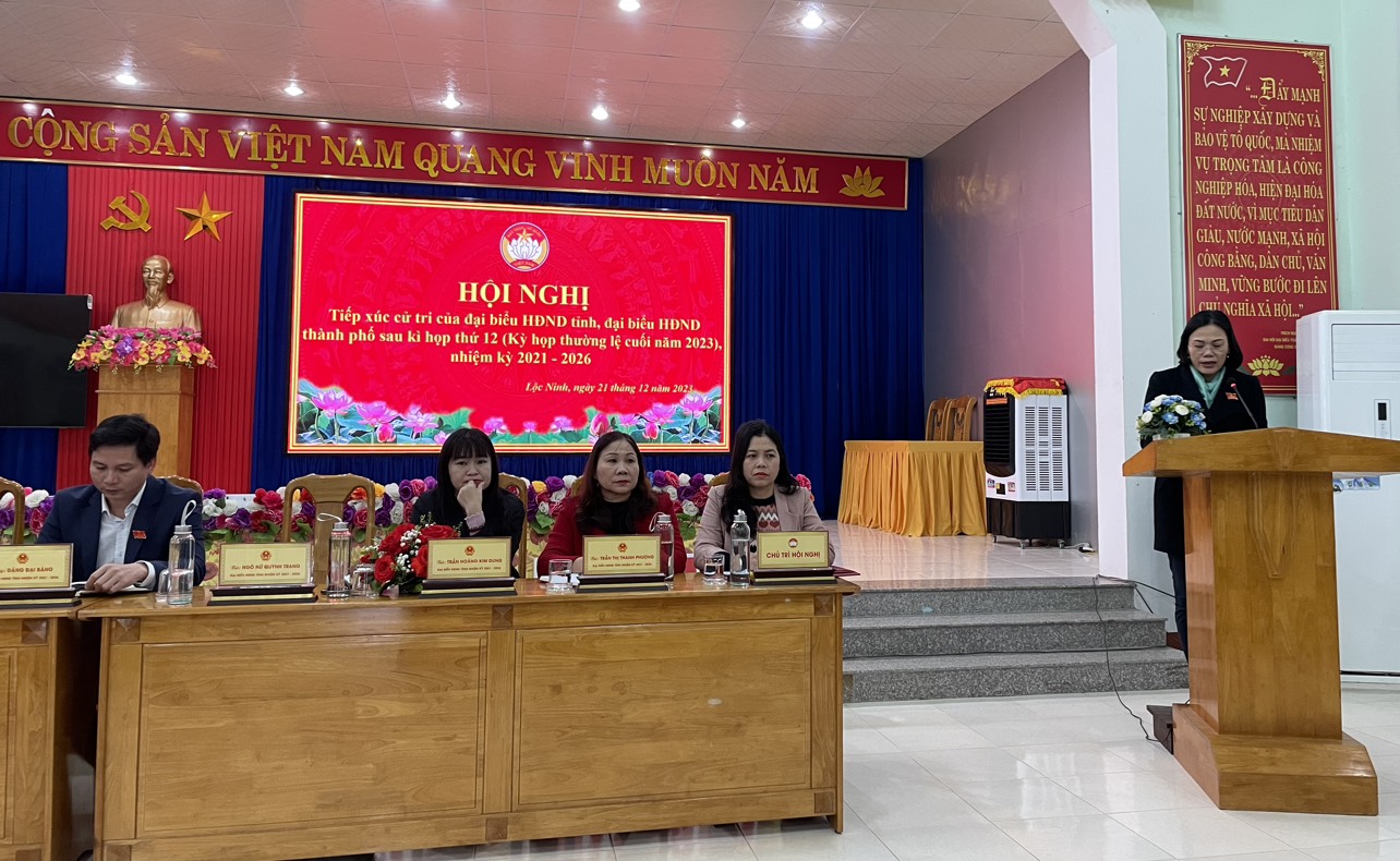 Chiều ngày 21/12/2023, tại UBND xã Lộc Ninh, tổ đại biểu HĐND tỉnh gồm: Ông Đặng Đại Bàng - Tỉnh ủy viên, Bí thư Tỉnh đoàn; bà Ngô Nữ Quỳnh Trang - Phó Trưởng ban Kinh tế - Ngân sách HĐND tỉnh; bà Trần Hoàng Kim Dung - Phó Chủ tịch Liên minh Hợp tác xã tỉnh và bà Trần Thị Thanh Phượng - Hiệu trưởng Trường Tiểu học số 1 Bảo Ninh đã có buổi tiếp xúc cử tri các xã, phường trên địa bàn thành phố Đồng Hới sau kỳ họp thứ 12, HĐND tỉnh khoá XVIII. Tham dự có đại diện lãnh đạo một số sở, ngành và tổ đại biểu HĐND thành phố Đồng Hới.