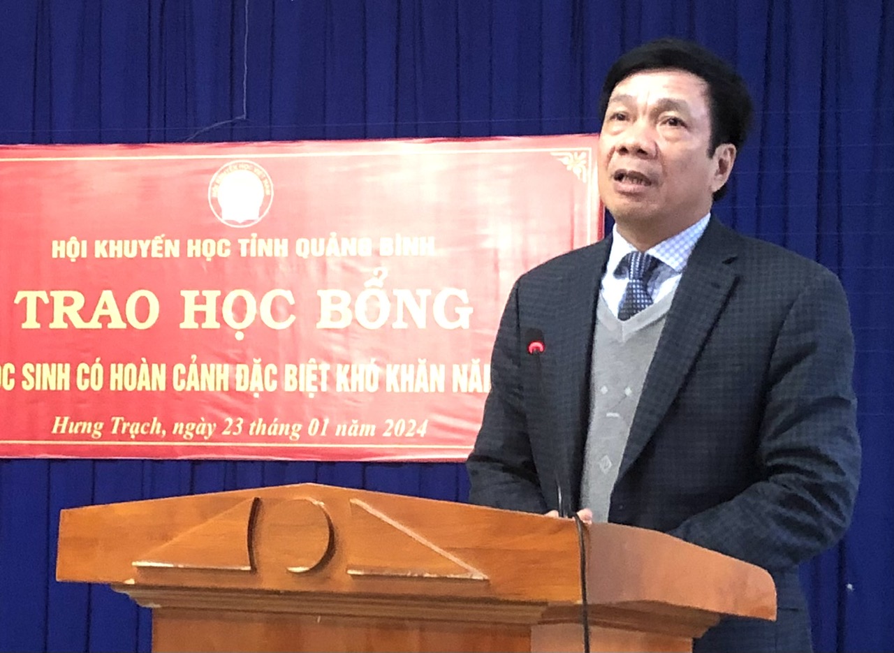 Phát biểu tại lễ trao học bổng, đồng chí Phó Chủ tịch Thường trực HĐND tỉnh đã ghi nhận, biểu dương những học sinh có hoàn cảnh khó khăn vươn lên trong học tập, đồng thời đồng chí mong muốn các em tiếp tục chăm ngoan, học giỏi để sau này trở thành những người có ích cho gia đình, xã hội. Mỗi suất học bổng tuy nhỏ nhưng đã thể hiện sự quan tâm của lãnh đạo tỉnh, cộng đồng xã hội đối với các em, giúp các em cùng gia đình vơi bớt những khó khăn, nhất là trong dịp Tết Nguyên đán sắp đến.