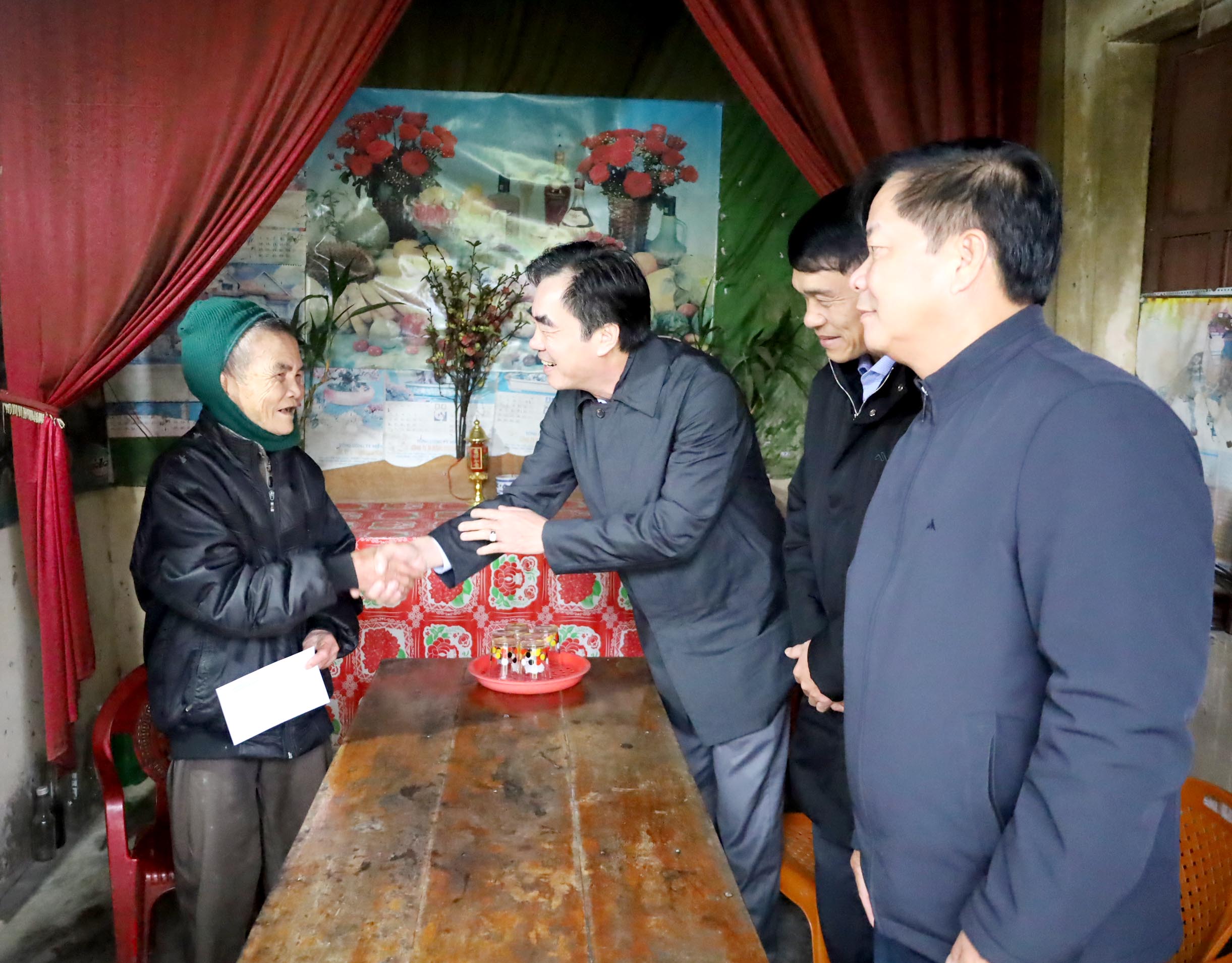 Đồng chí Dương Văn Hùng thăm, tặng quà cho hộ gia đình hộ nghèo tại thị trấn Quy Đạt