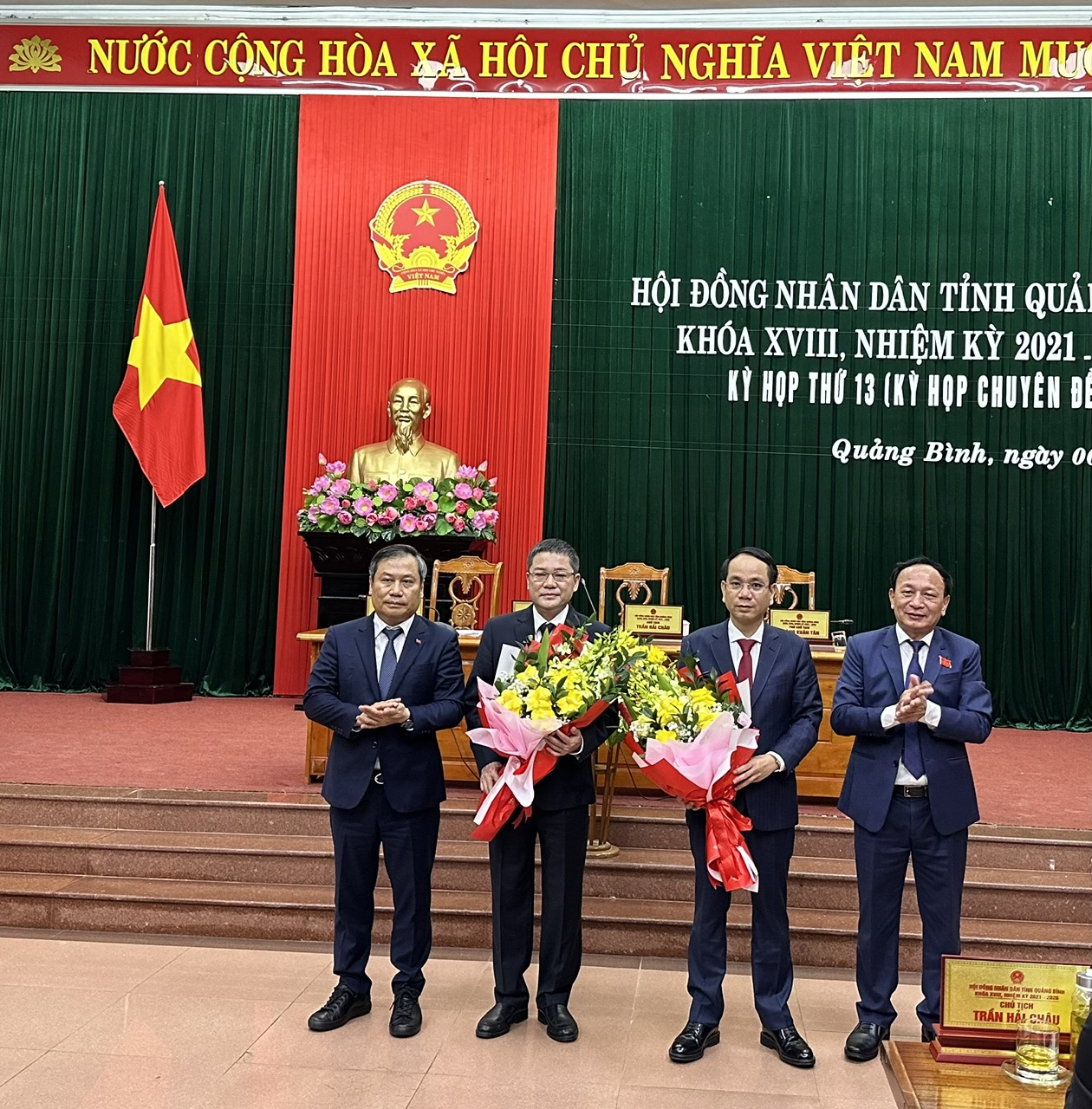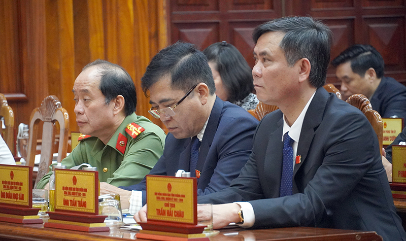 Bế mạc kỳ họp, Chủ tịch HĐND đề nghị UBND tỉnh, các cấp, các ngành, các địa phương, đơn vị theo chức năng, nhiệm vụ, quyền hạn được giao, khẩn trương triển khai quyết liệt, đồng bộ các giải pháp, bảo đảm các nghị quyết của HĐND tỉnh đi vào cuộc sống và đạt hiệu quả thiết thực. Đề nghị Thường trực HĐND tỉnh, các Ban HĐND tỉnh, Tổ đại biểu HĐND và các vị đại biểu HĐND tỉnh tiếp tục thực hiện tốt việc giám sát quá trình triển khai thực hiện các Nghị quyết đã được HĐND tỉnh thông qua, đồng thời, kịp thời nắm bắt, phản ánh những kiến nghị chính đáng của cử tri và Nhân dân để HĐND tỉnh xem xét, giải quyết. Thực hiện quy định của Luật Tổ chức chính quyền địa phương, HĐND tỉnh đã tiến hành miễn nhiệm, bầu đối với chức danh Phó Chủ tịch UBND tỉnh nhiệm kỳ 2021-2026. Thay mặt, Thường trực HĐND tỉnh, đồng chí Trần Hải Châu ghi nhận, đánh giá cao sự nỗ lực, cố gắng và những đóng góp của đồng chí Phan Mạnh Hùng trên cương vị Phó Chủ tịch UBND tỉnh trong những năm qua;với những năng lực, kinh nghiệm đã có, tiếp tục hoàn thành tốt mọi nhiệm vụ được giao trên cương vị công tác mới. Đồng chí Chủ tịch HĐND tỉnh chúc mừng đồng chí Phan Phong Phú được HĐND tỉnh bầu giữ chức danh Phó Chủ tịch UBND tỉnh; đồng thời đề nghị tiếp tục phát huy năng lực, kinh nghiệm, tinh thần trách nhiệm để hoàn tốt nhiệm vụ trên vị trí công tác mới, đóng góp xứng đáng vào sự phát triển kinh tế - xã hội của tỉnh nhà.