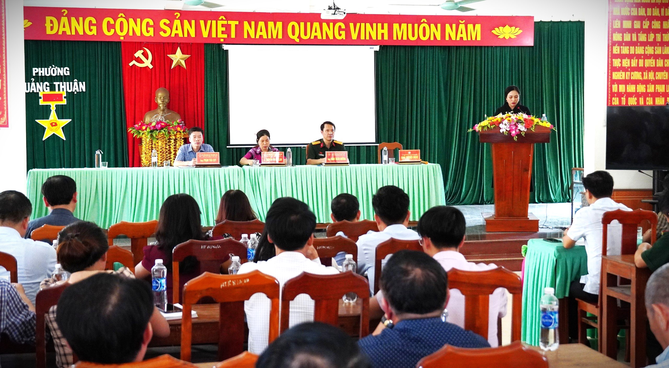 Chiều ngày 24/7/2024, tại UBND phường Quảng Thuận, thị xã Ba Đồn, Tổ đại biểu HĐND tỉnh gồm có các đại biểu: Đại tá Đinh Xuân Hướng, Chính ủy Bộ Chỉ huy Quân sự tỉnh; Phạm Thái Quý - Phó Trưởng Ban Pháp chế HĐND tỉnh; Nguyễn Thị Kim Lan - Phó Giám đốc Sở Nội vụ đã có buổi tiếp xúc với cử tri thị xã Ba Đồn sau Kỳ họp thứ 17, HĐND tỉnh khóa XVIII. Tham dự có đại diện lãnh đạo một số sở, ngành, đại diện lãnh đạo Thị uỷ, UBND thị xã Ba Đồn và đại diện các phòng trực thuộc cùng đông đảo cử tri trên địa bàn.