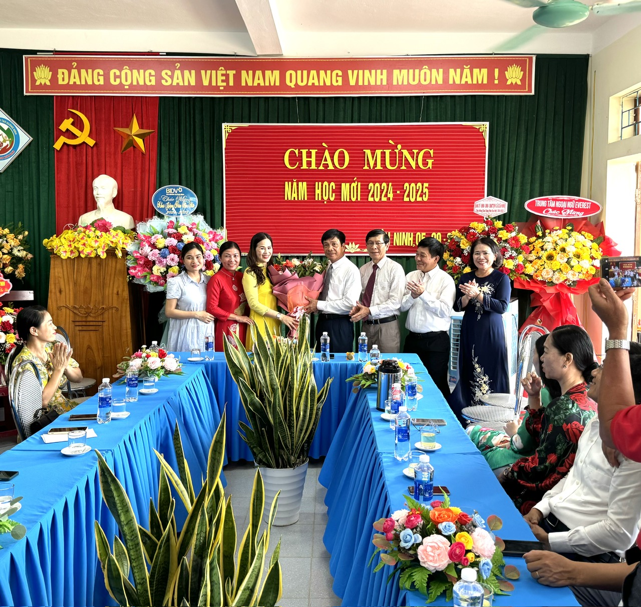 Thay mặt lãnh đạo tỉnh đồng chí Phó Chủ tịch thường trực HĐND tỉnh đã gửi đến các thầy, cô giáo và các em học sinh bó hoa tươi thắm. Chúc thầy, trò nhà trường đoàn kết, phấn khởi, sáng tạo, quyết tâm nỗ lực phấn đấu, bước vào năm học mới với nhiều thắng lợi mới.