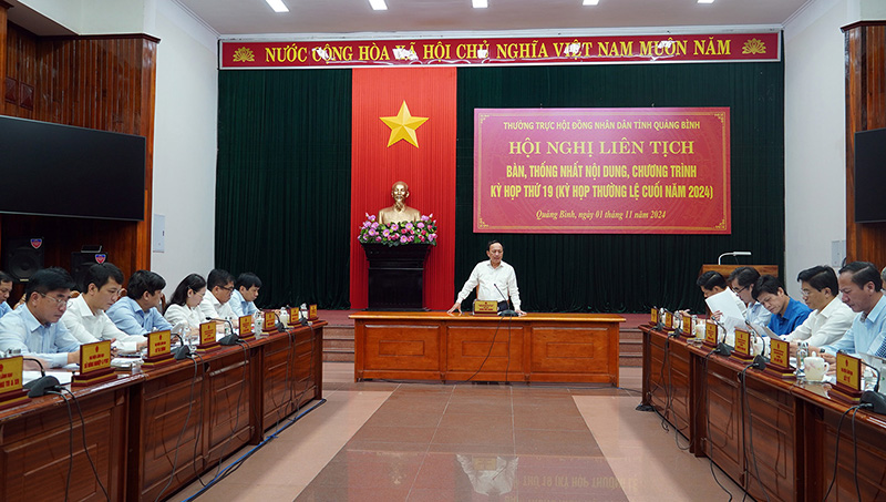 Kỳ họp thứ 19 (kỳ họp thường lệ) HĐND tỉnh khóa XVIII dự kiến tổ chức trong 03 ngày, từ ngày 09/12/2024 đến ngày 11/12/2024, khai mạc vào lúc 8 giờ ngày 09/12/2024 tại Hội trường UBND tỉnh, thành phố Đồng Hới.