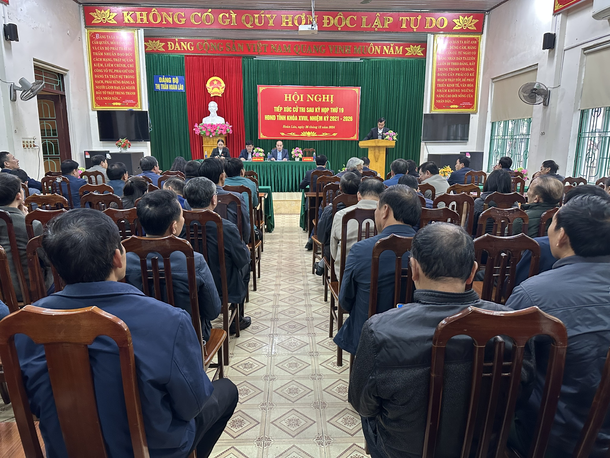 Sáng ngày 26/12/2924, tại thị trấn Hoàn Lão, tổ đại biểu HĐND tỉnh gồm có: Ông Lê Công Toán, Tỉnh ủy viên, Hiệu trưởng Trường Chính trị tỉnh; ông Trần Sơn Tùng, Phó trưởng Ban Văn hóa-xã hội, HĐND tỉnh và Phan Thị Quyên tiếp xúc cử tri huyện Bố Trạch kỳ họp thứ 19, HĐND tỉnh khóa XVIII. Dự buổi tiếp xúc có đại diện lãnh đạo một số sở, ngành liên quan, đại diện Thường trực HĐND, UBND, Ủy ban MTTQVN huyện Bố Trạch; Đảng ủy, Thường trực HĐND, UBND, Ủy ban MTTQVN các xã tại đơn vị bầu cử; các ban, ngành, đoàn thể và cử tri trên địa bàn.