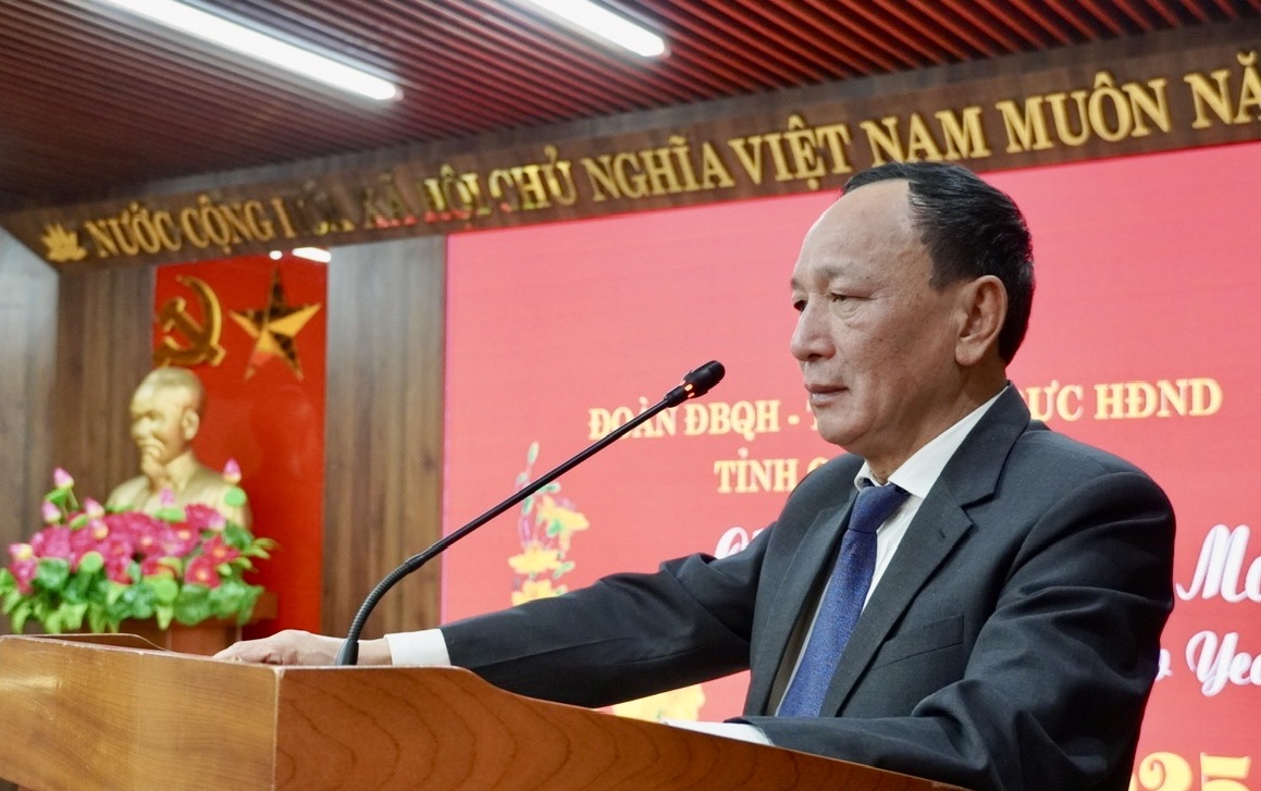 Đồng chí Chủ tịch HĐND tỉnh nhấn mạnh, trong thành tựu chung đó có sự đóng góp trí tuệ, kinh nghiệm, sự quan tâm, đồng hành của các đồng chí nguyên lãnh đạo Đoàn ĐBQH và HĐND tỉnh qua các thời kỳ. Nhân dịp xuân Ất Tỵ 2025, thay mặt Đoàn ĐBQH và Thường trực HĐND tỉnh đồng chí Chủ tịch HĐND tỉnh cám ơn sự đóng góp của các đồng chí, đồng thời chúc các đồng chí một năm mới sức khỏe, hạnh phúc, an khang và thịnh vượng.