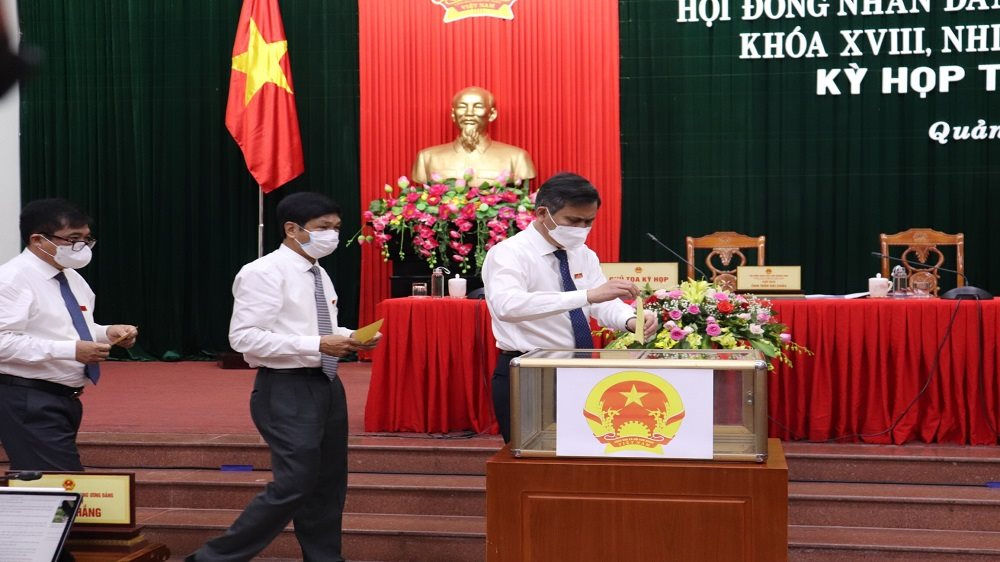 Các đại biểu bỏ phiếu bầu các chức danh chủ chốt của HĐND tỉnh và UBND tỉnh