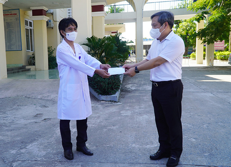 Đồng chí Bí thư Tỉnh ủy Vũ Đại Thắng tặng quà động viên y, bác sĩ Bệnh viện đa khoa Bắc Quảng Bình.