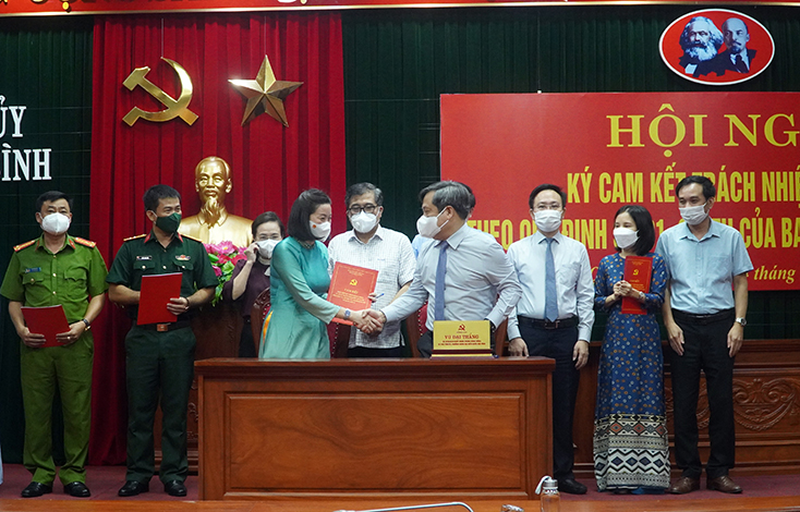 Tiếp đó, các đồng chí cán bộ được hiệp y, điều động và bổ nhiệm đã ký cam kết theo Quy định số 01 của Ban Thường vụ Tỉnh ủy về trách nhiệm và xử lý trách nhiệm đối với người đứng đầu, cấp phó của người đứng đầu cơ quan, đơn vị thuộc diện Ban Thường vụ Tỉnh ủy quản lý trong thực hiện chức trách, nhiệm vụ được giao.