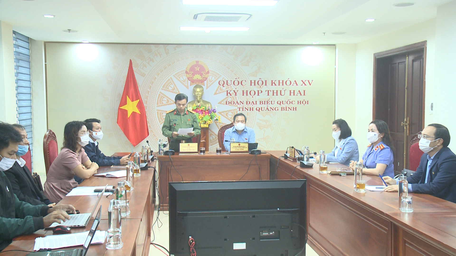 Tiếp tục chương trình kỳ họp thứ 2, hôm nay 25/10, dưới sự điều hành của Phó Chủ tịch Quốc hội Nguyễn Khắc Định, Quốc hội thảo luận trực tuyến về Dự án Luật sửa đổi, bổ sung một số điều của Bộ luật Tố tụng hình sự. Tại điểm cầu tỉnh Quảng Bình, ông Vũ Đại Thắng, UVTW Đảng, Bí thư Tỉnh ủy, Trưởng Đoàn ĐBQH tỉnh; bà Nguyễn Minh Tâm, Phó Trưởng Đoàn chuyên trách Đoàn ĐBQH tỉnh chủ trì phiên thảo luận với sự tham gia của các vị ĐBQH, gồm ông Nguyễn Tiến Nam và ông Trần Quang Minh. Tham dự có đại diện lãnh đạo một số sở, ban, ngành liên quan.