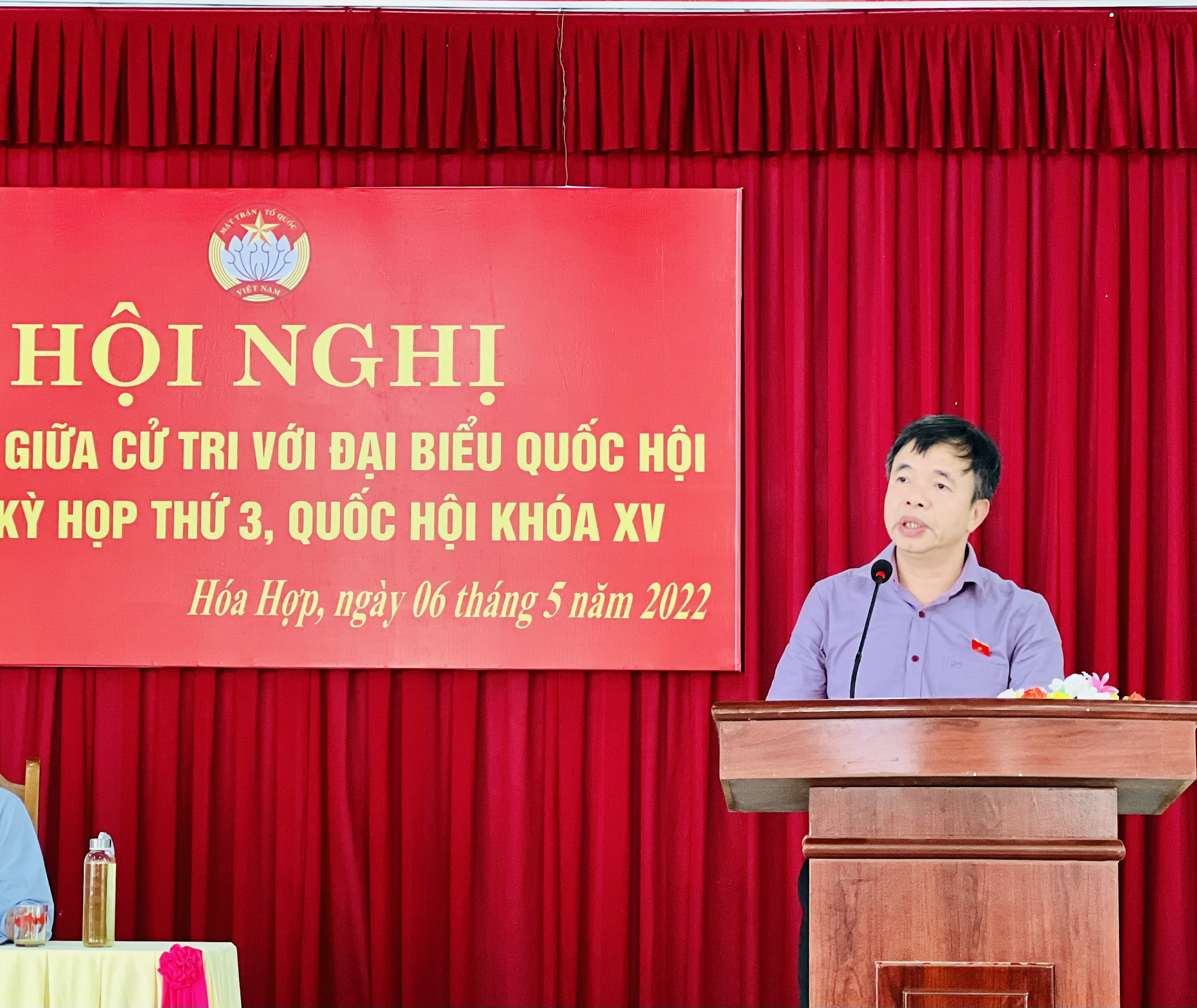 Thực hiện kế hoạch tiếp xúc cử tri trước kỳ họp thứ 3, Quốc hội khoá XV, sáng ngày 06/5/2022 Đoàn đại biểu Quốc hội tỉnh Quảng Bình đã tiến hành tiếp xúc cử tri tại xã Hoá Hợp, huyện Minh Hoá. Tham dự buổi tiếp xúc cử tri, về phía Đoàn ĐBQH tỉnh có các đại biểu Quốc hội trong Đoàn, gồm ông Nguyễn Tiến Nam – Uỷ viên Thường vụ Tỉnh uỷ, Giám đốc Công an tỉnh, bà Nguyễn Thị Tuyết Nga – uỷ viên chuyên trách Uỷ ban Văn hoá, Giáo dục Quốc hội khoá XV và ông Trần Quang Minh, Phó Chủ tịch UBMTTQ Việt Nam tỉnh; về phía đại diện lãnh đạo các sở ngành trong tỉnh có ông Trần Hữu Ninh – Phó Ban Dân tộc tỉnh, Nguyễn Anh Tuấn – Phó Giám đốc Sở Giao thông – Vận tải, Hồ Tân Cảnh – Phó Giám đốc Sở Lao động – Thương binh và Xã hội, đại diện huyện ủy, Thường trực HĐND - UBND - UBMTTQVN huyện và khoảng hơn 100 cử tri trên địa bàn huyện.