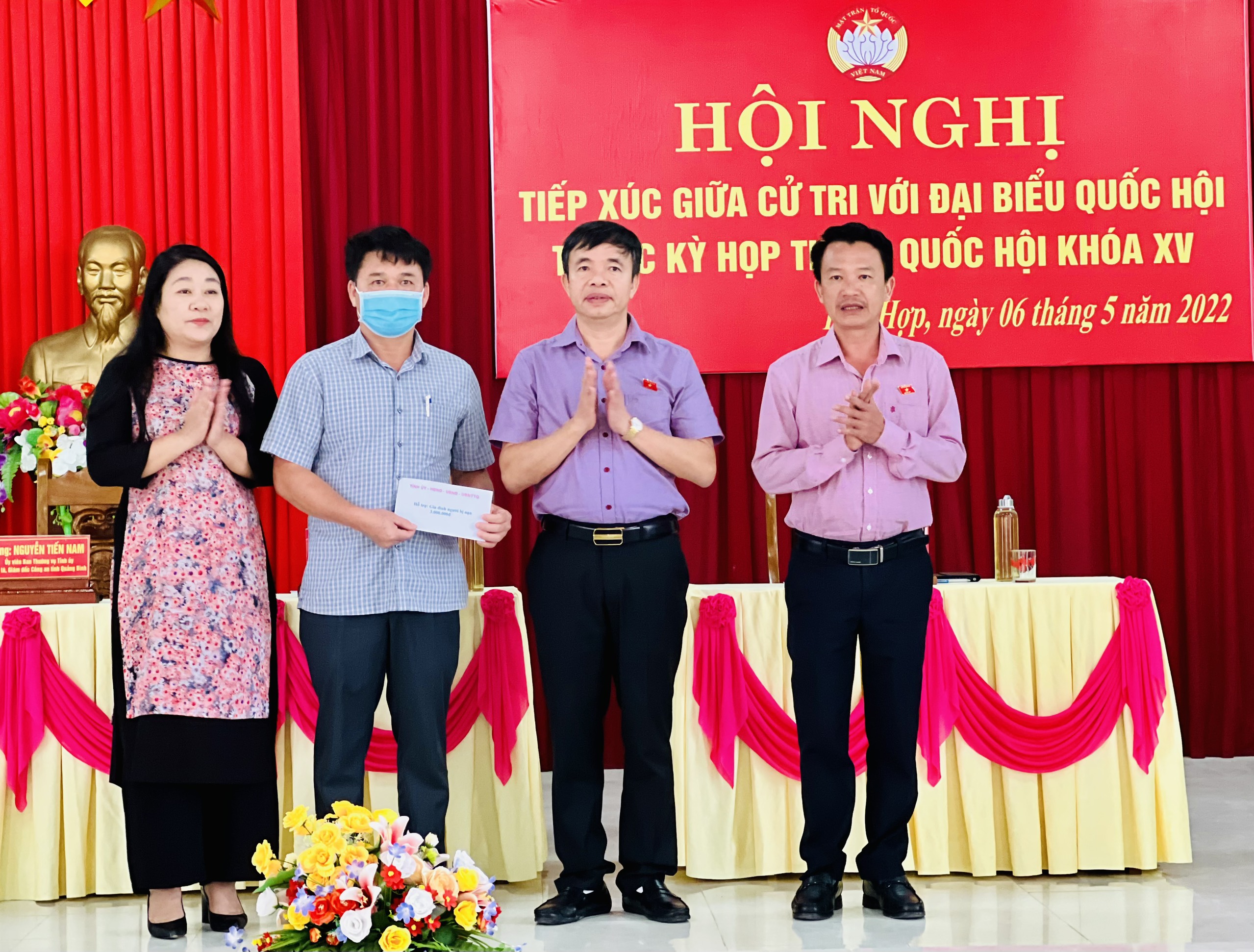Tại buổi tiếp xúc cử tri, nhằm hỗ trợ kịp thời, chia sẻ mất mát, đau thương đối với gia đình các nạn nhân trong vụ tai nạn xảy ra trên quốc lộ 12A đi cửa khẩu Cha Lo đoạn qua bản Bãi Dinh (xã Dân Hoá, huyện Minh Hoá, tỉnh Quảng Bình), các đại biểu Quốc hội đã trao 49 triệu đồng hỗ trợ cho gia đình nạn nhân để sửa chữa nhà cửa, khắc phục hậu quả tai nạn; trao 03 triệu đồng hỗ trợ cho trường hợp đuối nước trên địa bàn huyện. Kinh phí tặng quà được huy động từ Quỹ Vì Người nghèo của Uỷ ban Mặt trận tổ quốc Việt Nam tỉnh Quảng Bình.
