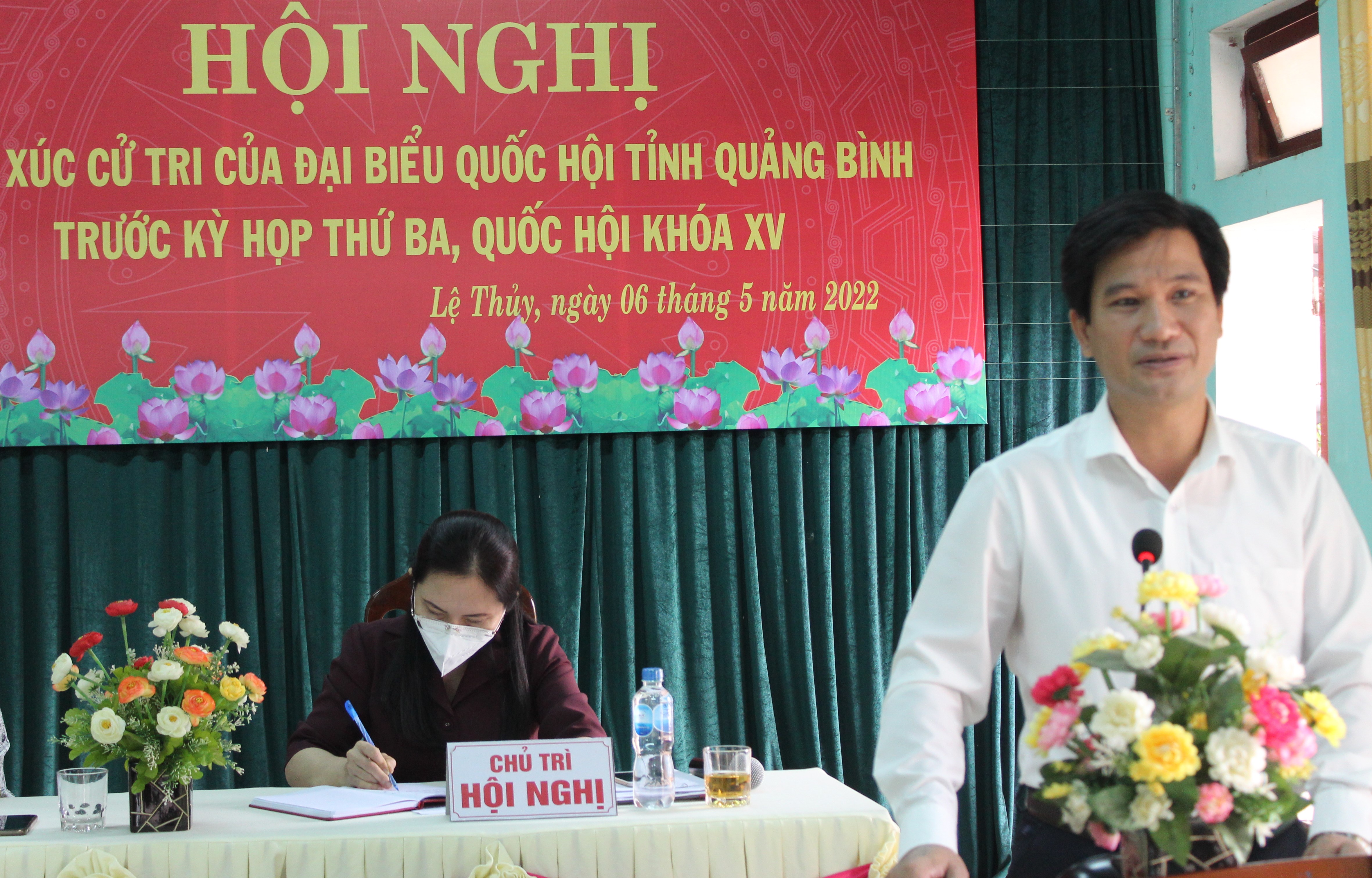Sáng ngày 06/5/2022, Đoàn đại biểu Quốc hội (ĐBQH) tỉnh gồm: Đại biểu Nguyễn Minh Tâm, Tỉnh Ủy viên, Phó Trưởng đoàn chuyên trách Đoàn ĐBQH tỉnh; đại biểu Nguyễn Mạnh Cường, Phó Chủ nhiệm Ủy ban Tư pháp của Quốc hội, Chủ tịch Nhóm Nghị sỹ hữu nghị Việt Nam - A-déc-bai-gian đã có buổi tiếp xúc với cử tri tại thị trấn Nông trường Lệ Ninh, huyện Lệ Thủy trước kỳ họp thứ 3, Quốc hội khóa XV. Cùng dự buổi tiếp xúc có đại diện lãnh đạo Sở Tài nguyên và Môi trường, đại diện Thường trực HĐND, UBND, UBMTTQVN huyện Lệ Thủy, Đảng ủy, Thường trực HĐND, UBND, Ủy ban MTTQVN thị trấn Nông trường Lệ Ninh; các ban, ngành, đoàn thể và cử tri trên địa bàn.