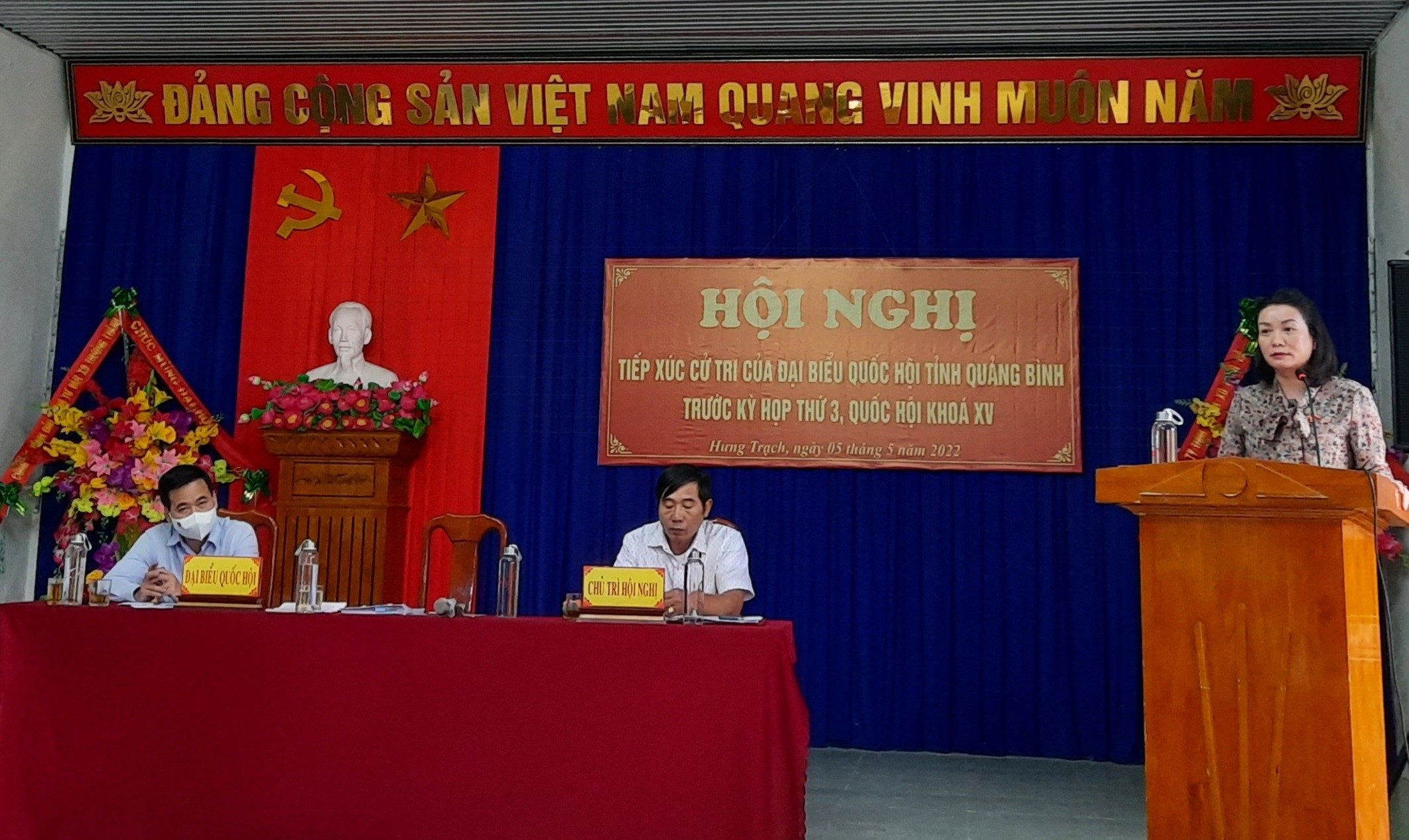 Chiều ngày 05/05/2022, tại Hội trường UBND xã Hưng Trạch, huyện Bố Trạch, các vị ĐBQH thuộc Đoàn ĐBQH tỉnh Quảng Bình gồm Bà Nguyễn Minh Tâm, Tỉnh ủy viên, Phó Trưởng đoàn chuyên trách; Ông Nguyễn Mạnh Cường, Phó Chủ nhiệm Ủy ban Tư pháp của Quốc hội đã có buổi tiếp xúc với cử tri huyện Bố Trạch trước kỳ họp thứ 3, Quốc hội khóa XV.