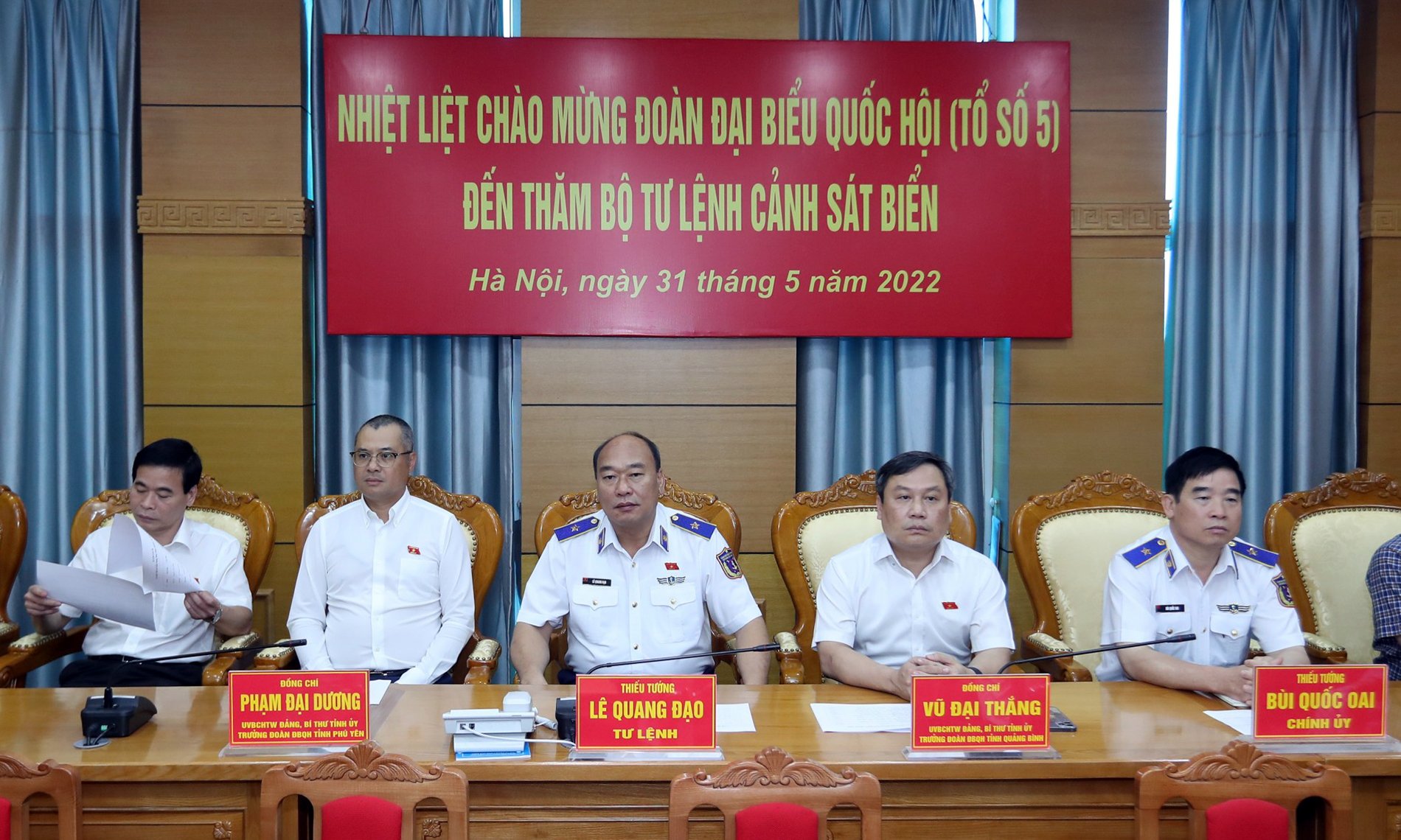 Chiều tối ngày 31/5/2022, Tổ đại biểu Quốc hội (ĐBQH) số 5 do đồng chí Vũ Đại Thắng, Ủy viên Trung ương Đảng, Bí thư Tỉnh ủy, Trưởng đoàn ĐBQH tỉnh Quảng Bình dẫn đầu đã có buổi gặp mặt Bộ Tư lệnh Cảnh sát biển Việt Nam.