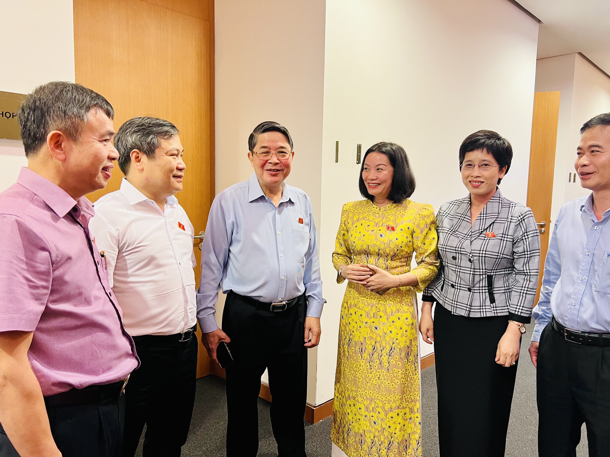 Các đại biểu Quốc hội tỉnh trao đổi bên lề kỳ họp
