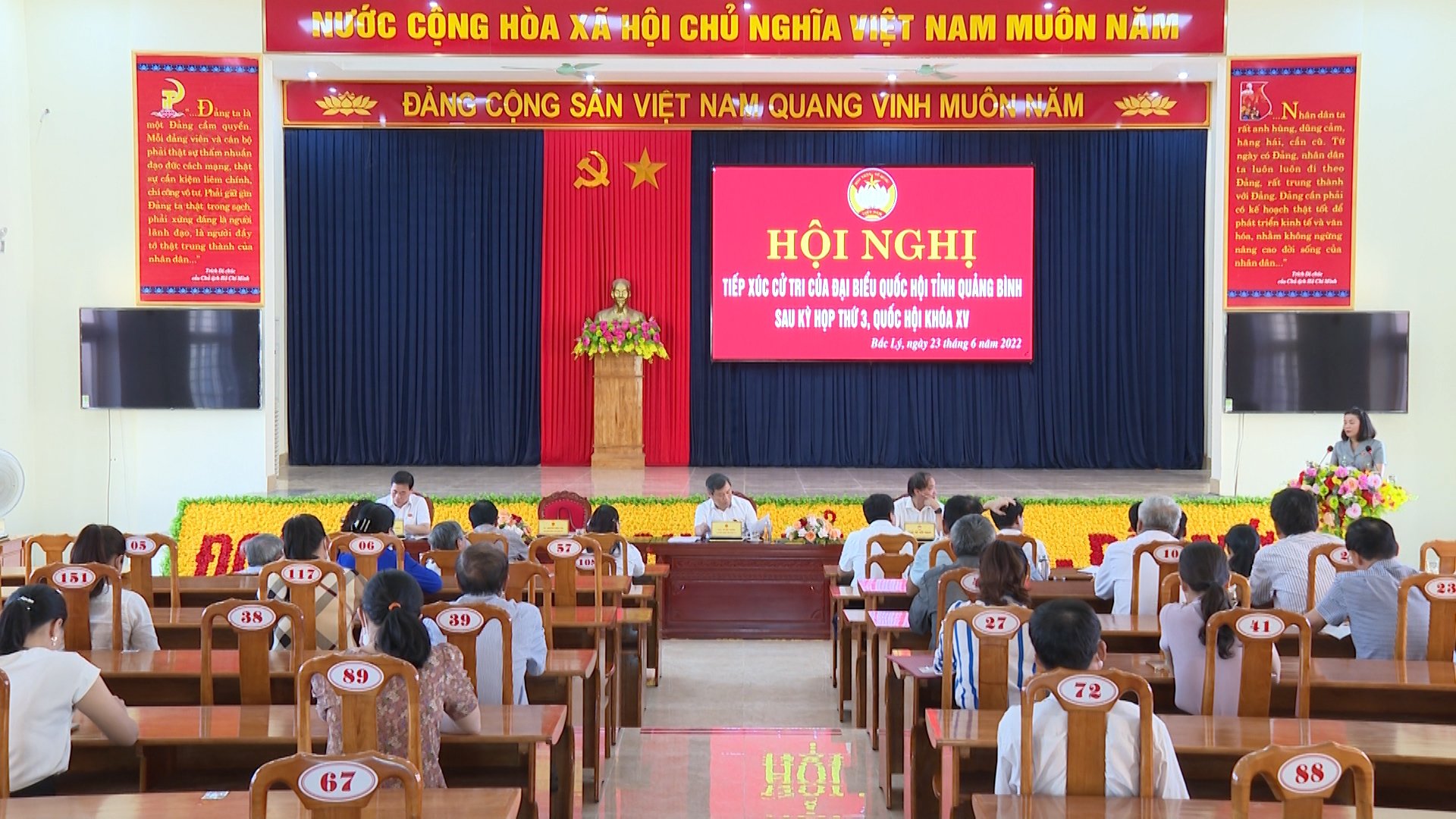 Sáng ngày 23/6/2022, tại Trung tâm Văn hóa phường Bắc Lý, thành phố Đồng Hới, các vị ĐBQH thuộc Đoàn đại biểu Quốc hội tỉnh Quảng Bình gồm Ông Vũ Đại Thắng, Ủy viên BCH Trung ương Đảng, Bí thư Tỉnh ủy, Trưởng Đoàn ĐBQH tỉnh; Bà Nguyễn Minh Tâm, Tỉnh ủy viên, Phó Trưởng đoàn chuyên trách; Ông Nguyễn Mạnh Cường, Phó Chủ nhiệm Ủy ban Tư pháp của Quốc hội đã có buổi tiếp xúc với cử tri thành phố Đồng Hới sau kỳ họp thứ 3, Quốc hội khóa XV.