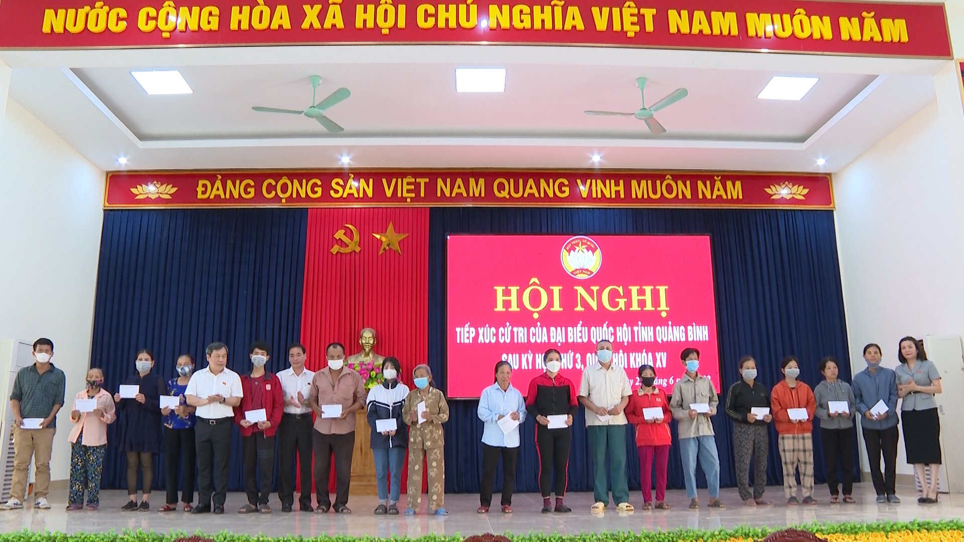 Tại buổi tiếp xúc cử tri, các đại biểu Quốc hội đã trao 35 suất quà, mỗi suất 1.000.000 đồng tiền mặt hỗ trợ cho các đối tượng thuộc hộ nghèo, có hoàn cảnh khó khăn do bị ảnh hưởng bởi dịch bệnh Covid-19 trên địa bàn thành phố Đồng Hới.