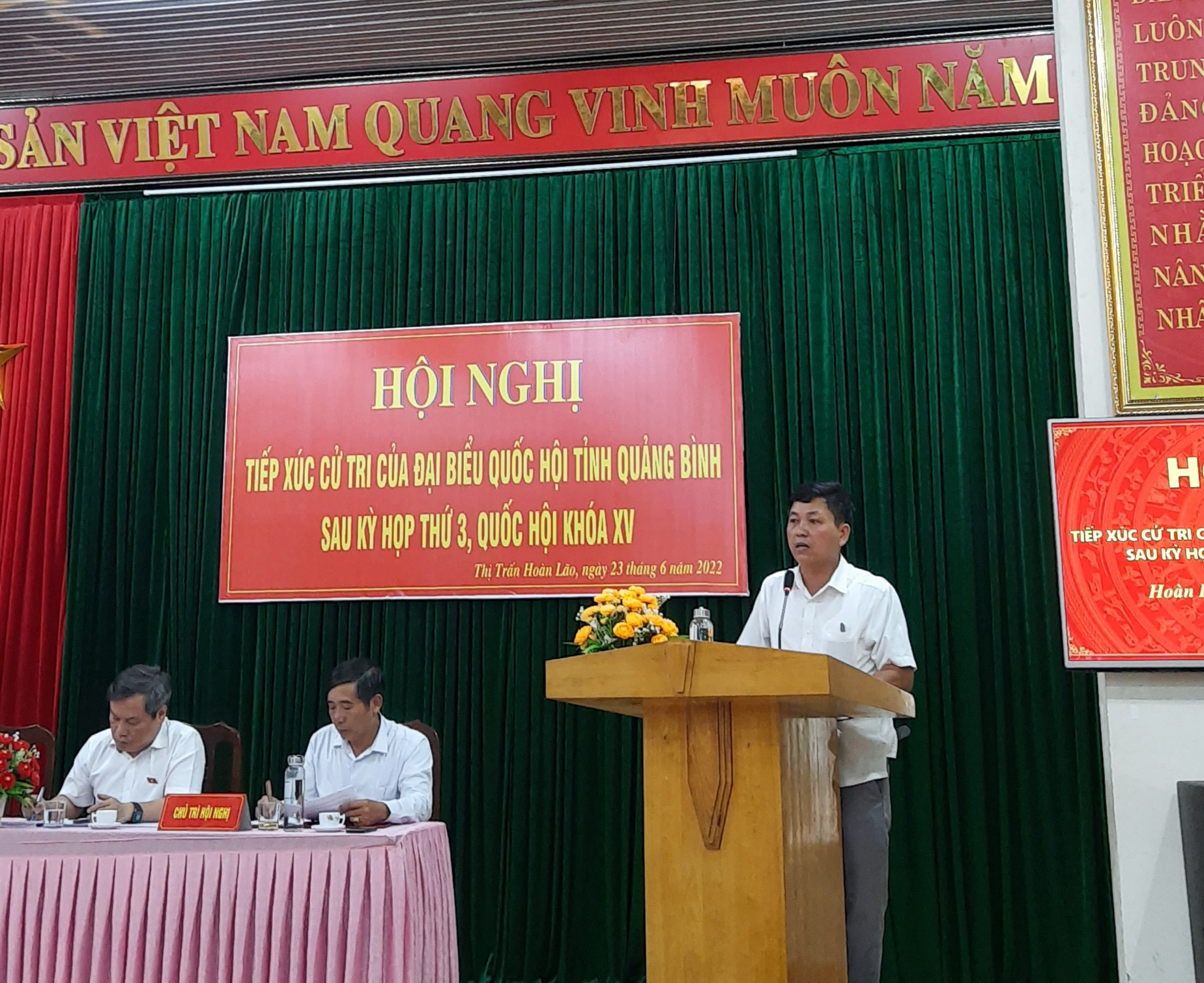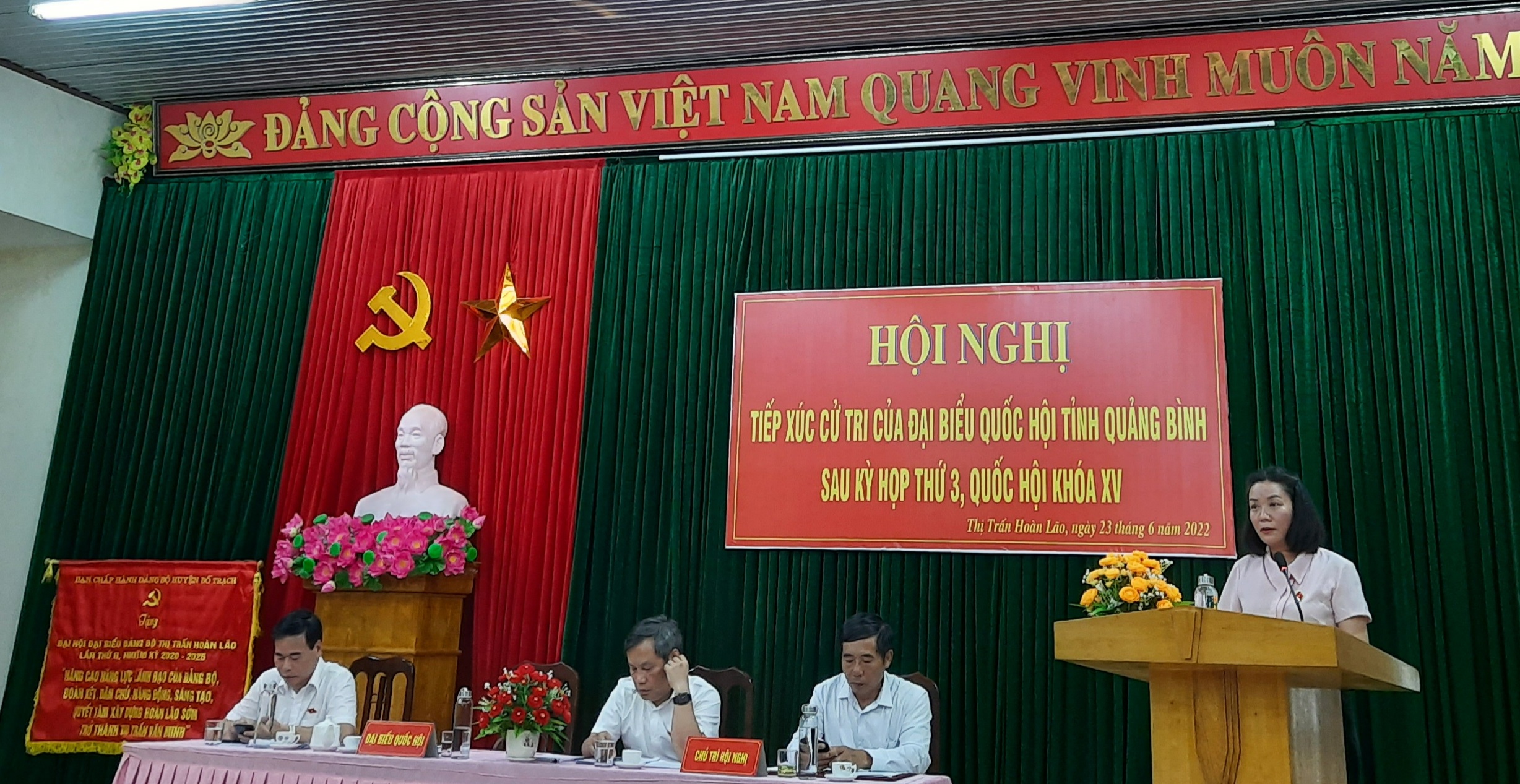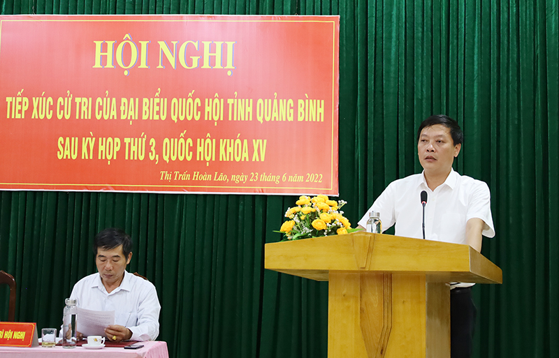 Chiều ngày 23/6/2022, tại Hội trường UBND xã Hoàn Lão, huyện Bố Trạch, các vị ĐBQH thuộc Đoàn ĐBQH tỉnh Quảng Bình gồm Ông Vũ Đại Thắng, Ủy viên BCH Trung ương Đảng, Bí thư Tỉnh ủy, Trưởng Đoàn ĐBQH tỉnh; Bà Nguyễn Minh Tâm, Tỉnh ủy viên, Phó Trưởng đoàn chuyên trách; Ông Nguyễn Mạnh Cường, Phó Chủ nhiệm Ủy ban Tư pháp của Quốc hội đã có buổi tiếp xúc với cử tri huyện Bố Trạch sau kỳ họp thứ 3, Quốc hội khóa XV.