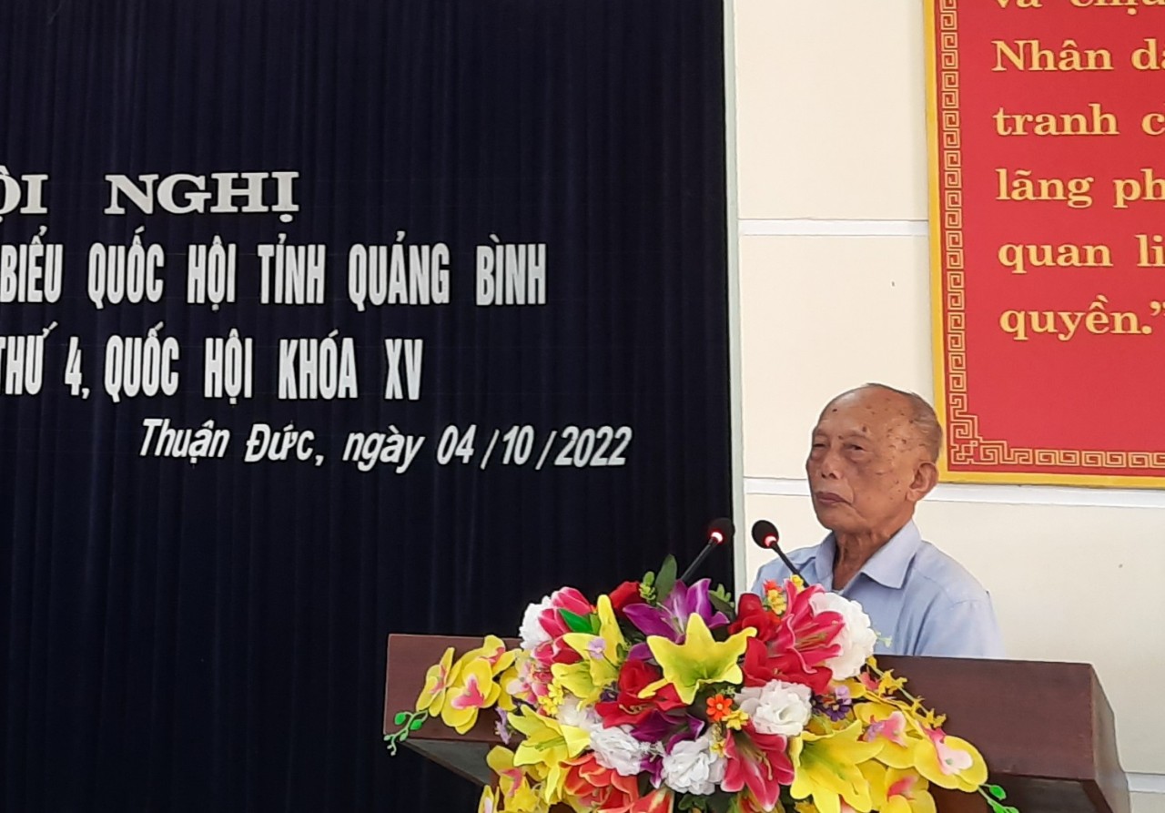 Sau khi nghe đại biểu Quốc hội báo cáo, cử tri thành phố Đồng Hới đã có những ý kiến, kiến nghị về các vấn đề như: đề nghị xem xét giải quyết thấu đáo chế độ, chính sách cho các đối tượng có công; thực hiên thanh tra, kiểm tra việc giải quyết tranh chấp đất đai tại xã Bảo Ninh; đề nghị xoá dự án treo đường Hồ Chí Minh trên đại phận xã Thuận Đức để người dân ổn định cuộc sống; xử lý các điểm đen trên đường Phan Đình Phùng;…