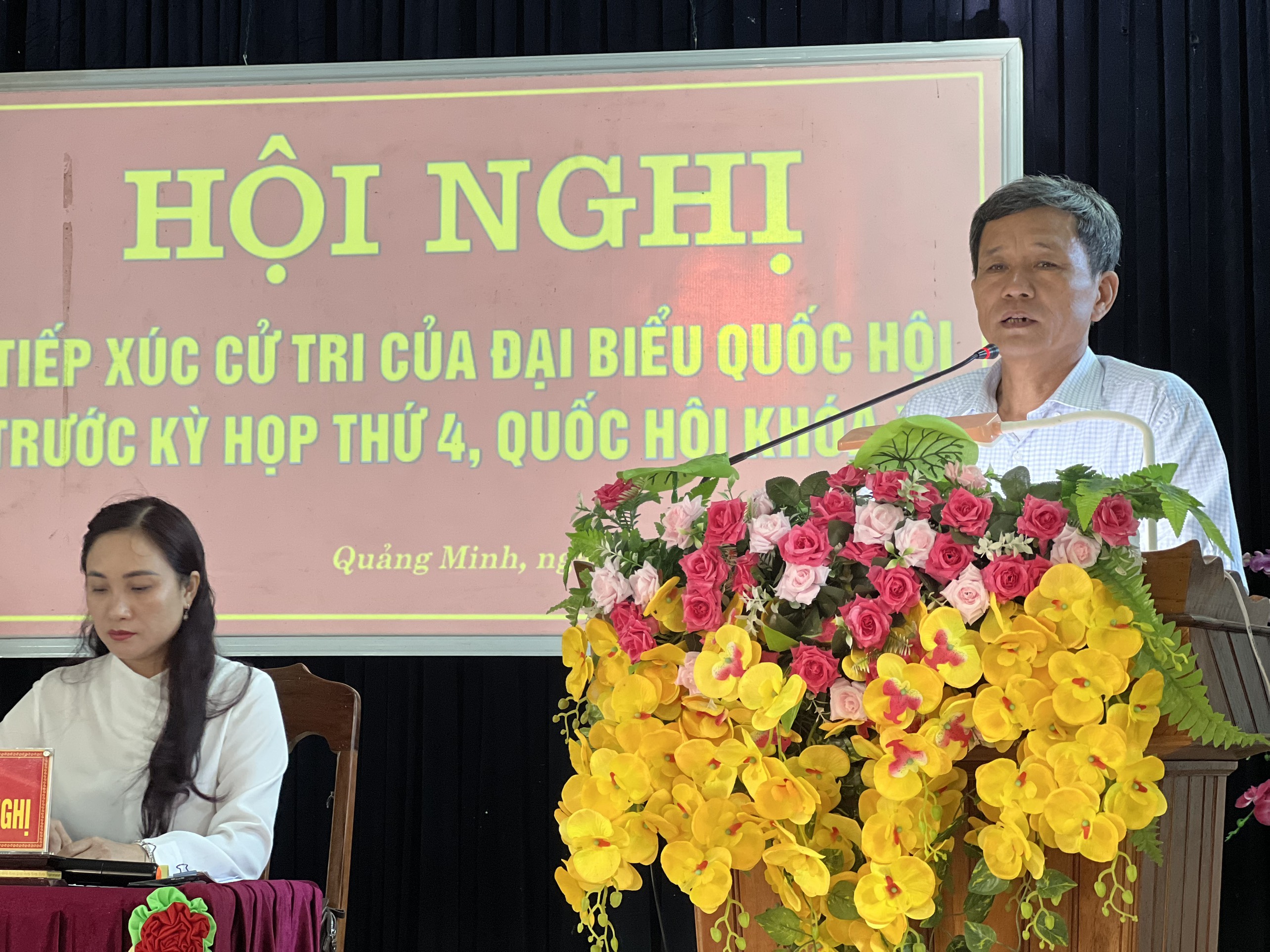 Sáng nay, ngày 05/10/2022, tại Hội trường Ủy ban nhân dân xã Quảng Minh, các vị đại biểu Quốc hội (ĐBQH) thuộc Đoàn ĐBQH tỉnh Quảng Bình, gồm: Đại biểu Nguyễn Minh Tâm, Tỉnh ủy viên, Phó Trưởng Đoàn; đại biểu Nguyễn Mạnh Cường, Phó Chủ nhiệm Ủy ban tư pháp của Quốc hội và đại biểu Nguyễn Thị Tuyết Nga, Ủy viên chuyên trách Ủy ban Văn hoá - Giáo dục của Quốc hội đã tiếp xúc với cử tri thị xã Ba Đồn trước kỳ họp thứ 4, Quốc hội khóa XV.
