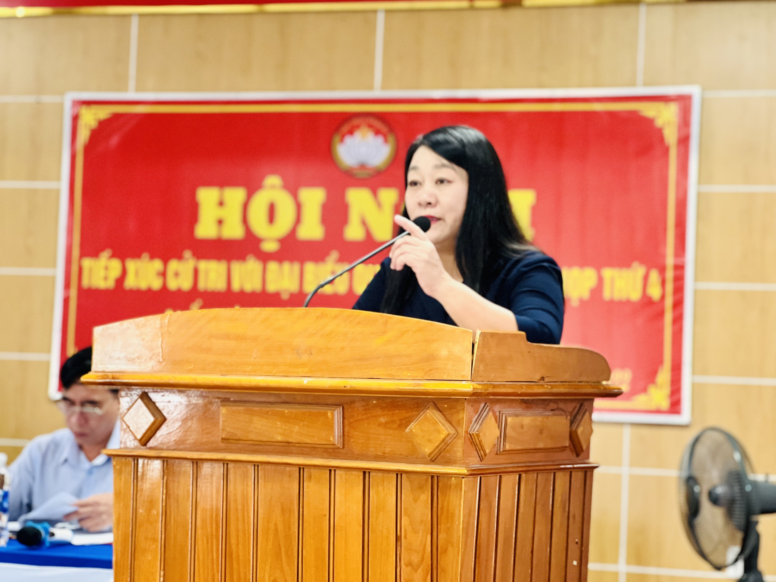Bà Phạm Thị Ngọc Thủy, Phó Chủ tịch UBND huyện trả lời, tiếp thu những vấn đề cử tri phản ánh, kiến nghị