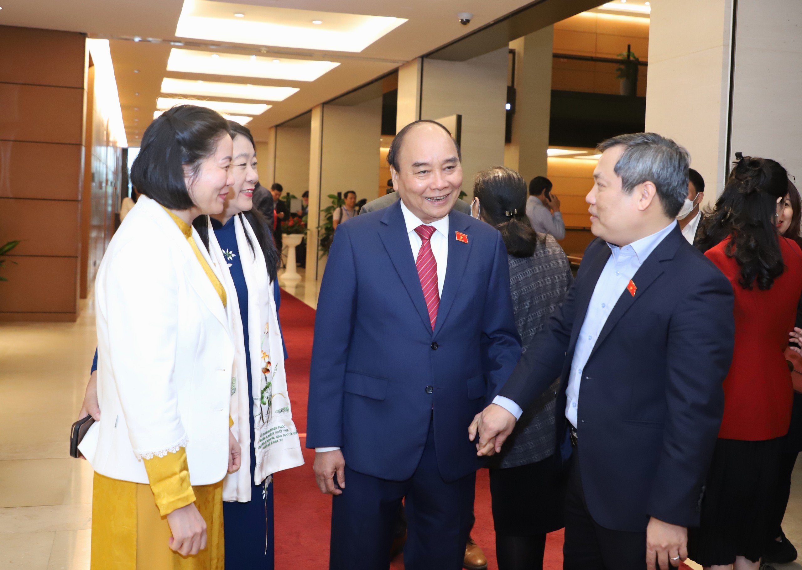 Chủ tịch nước Nguyễn Xuân Phúc trao đổi với các đại biểu Đoàn Quảng Bình bên lề kỳ họp