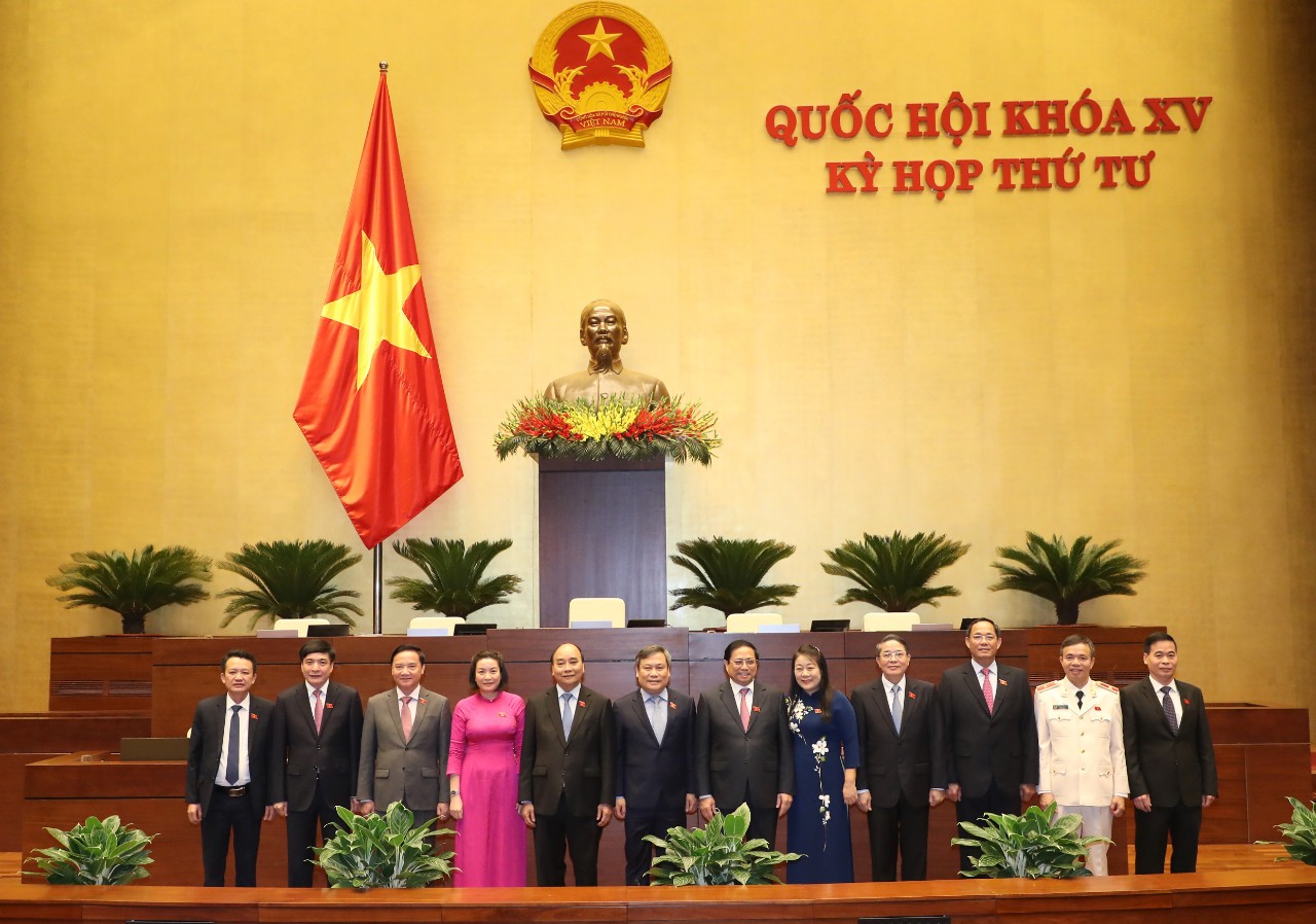 Đoàn ĐBQH tỉnh Quảng Bình chụp ảnh lưu niệm cùng Chủ tịch nước, Thủ tướng và các Phó Chủ tịch Quốc hội