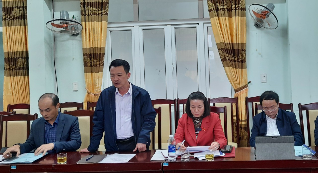 Đồng chí Nguyễn Minh Tâm phát biểu đặt vấn đề tại buổi làm việc với huyện Tuyên Hoá