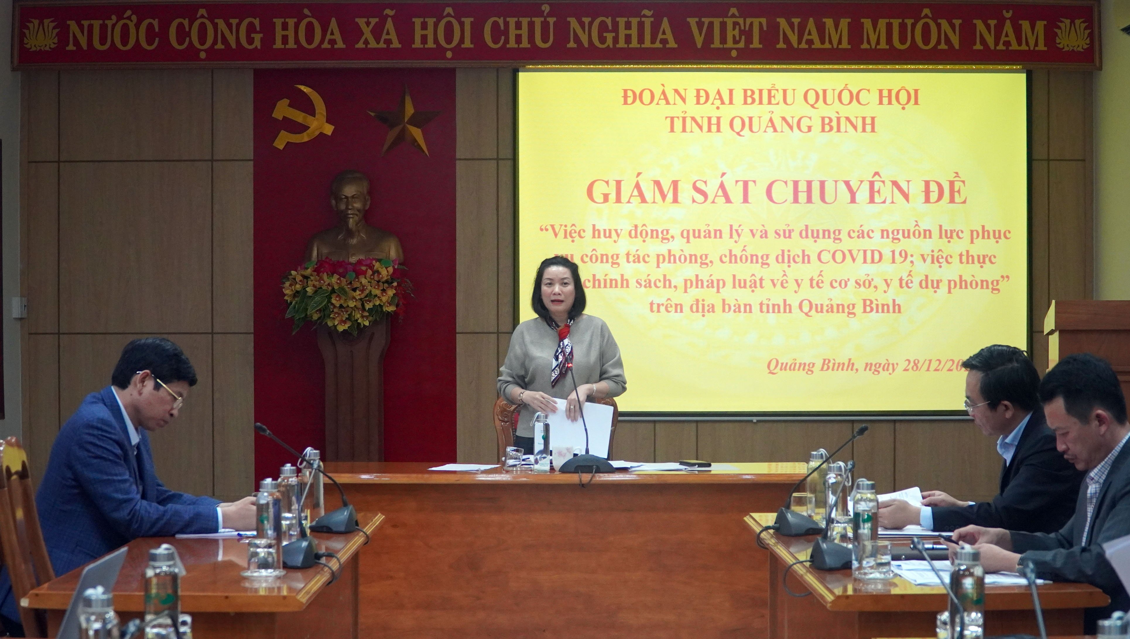 Đồng chí cũng đề nghị các ngành, đơn vị khẩn trương bổ sung, hoàn thiện báo cáo gửi đoàn giám sát để tổng hợp nhằm đánh giá khách quan tính khả thi của chính sách, thấy rõ những bất cập để phối hợp giải quyết và tiếp tục đề xuất sửa đổi, bổ sung chính sách, pháp luật liên quan đến việc huy động, quản lý và sử dụng các nguồn lực phục vụ công tác phòng, chống dịch COVID-19; nâng cao hiệu quả hoạt động của y tế cơ sở, y tế dự phòng./.