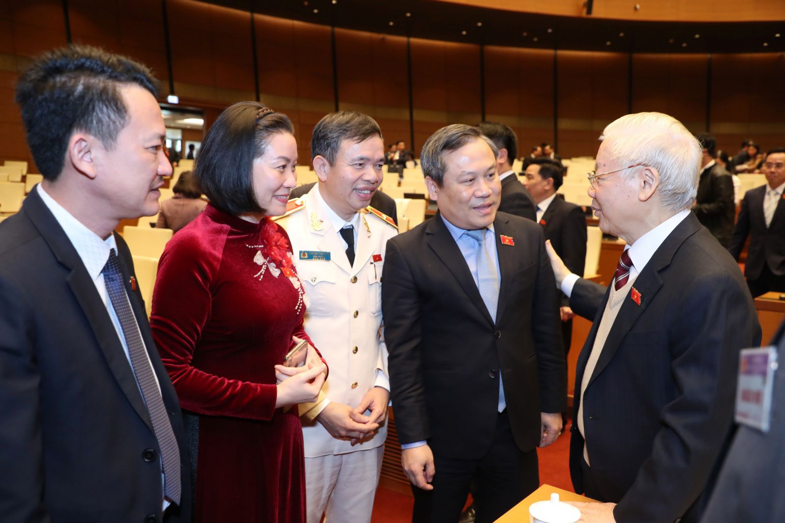 Tại phiên khai mạc, Đoàn ĐBQH tỉnh đã được gặp đồng chí Tổng Bí thư Nguyễn Phú Trọng. Đồng chí Bí thư Tỉnh ủy Vũ Đại Thắng trân trọng chuyển đến đồng chí Tổng Bí thư lời chúc mừng của cán bộ, đảng viên và nhân dân tỉnh Quảng Bình. Kính chúc Tổng Bí thư khỏe mạnh, cán bộ, đảng viên và nhân dân tỉnh Quảng Bình luôn tin tưởng, kỳ vọng Tổng Bí thư sẽ tiếp tục lãnh đạo, dẫn dắt đất nước ngày càng phát triển, nhân dân ấm no, hạnh phúc.