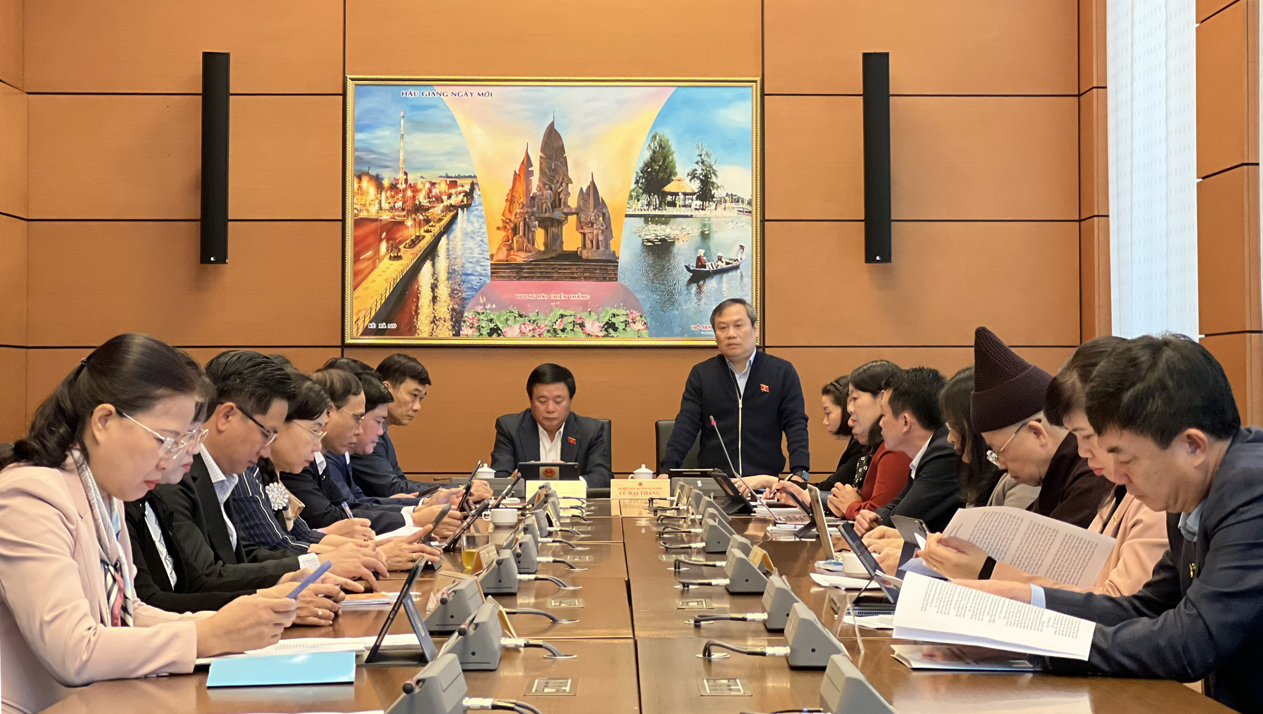 Tiếp tục chương trình kỳ họp bất thường lần thứ 2, Quốc hội khóa XV, ngày 6/1, Đoàn Đại biểu Quốc hội (ĐBQH) tỉnh do đồng chí Vũ Đại Thắng, Ủy viên Trung ương Đảng, Bí thư Tỉnh ủy làm trưởng đoàn đã tham gia thảo luận tại tổ và hội trường.