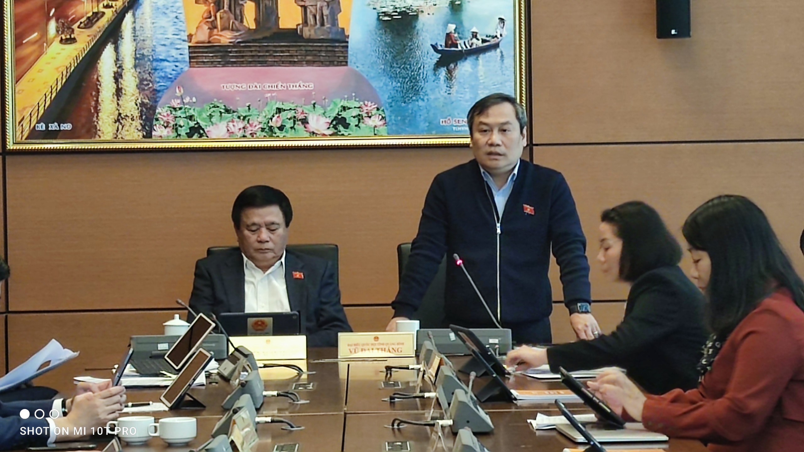 Buổi sáng, trong phiên thảo luận tại tổ, dưới sự điều hành của đồng chí Nguyễn Xuân Thắng, Ủy viên Bộ Chính trị, Giám đốc Học viện Chính trị Quốc gia Hồ Chí Minh, Chủ tịch Hội đồng lý luận Trung ương và đồng chí Vũ Đại Thắng, tổ ĐBQH 19 gồm đại biểu các đoàn Quảng Ninh, Quảng Bình và Long An đã thảo luận về Quy hoạch tổng thể Quốc gia thời kỳ 2021-2030, tầm nhìn đến năm 2050 (Quy hoạch) và Nghị quyết số 30/2021/QH15 ngày 28/7/2021 Kỳ họp thứ nhất, Quốc hội khóa XV về các chính sách phòng, chống dịch bệnh Covid-19.