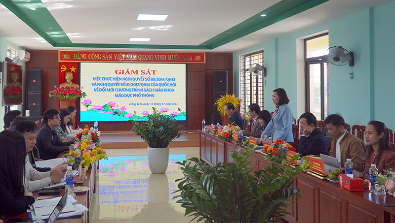 Tại buổi giám sát, các trường đã báo cáo tình hình thực hiện các nghị quyết của Quốc hội về đổi mới chương trình, sách giáo khoa giáo dục phổ thông (ĐMCT, SGK GDPT).