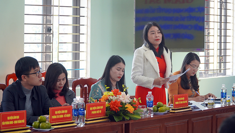 Cô giáo Võ Thị Minh Đức - Hiệu phó phụ trách trường THCS Quang Phú giải trình các ý kiến của Đoàn Giám sát