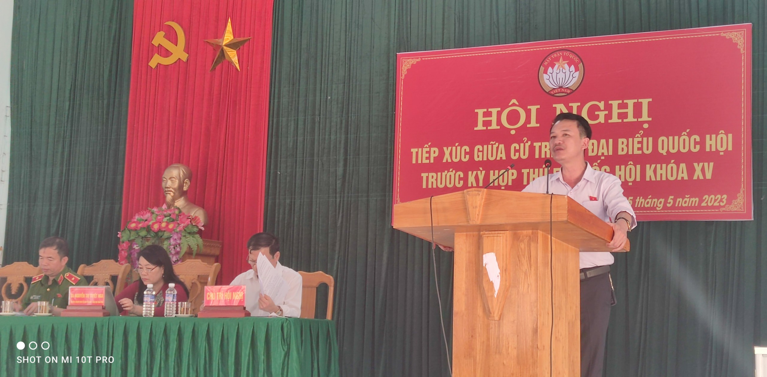 Đại biểu Quốc hội Trần Quang Minh báo cáo kết quả trả lời ý kiến, kiến nghị của cử tri sau kỳ họp thứ 4, Quốc hội khóa XV; đồng thời tiếp thu các ý kiến của cử tri và trực tiếp trả lời một số kiến nghị thuộc thẩm quyền. Những ý kiến còn lại, Đoàn ĐBQH tỉnh sẽ tổng hợp và chuyển đến các cơ quan chức năng xem xét, giải quyết.