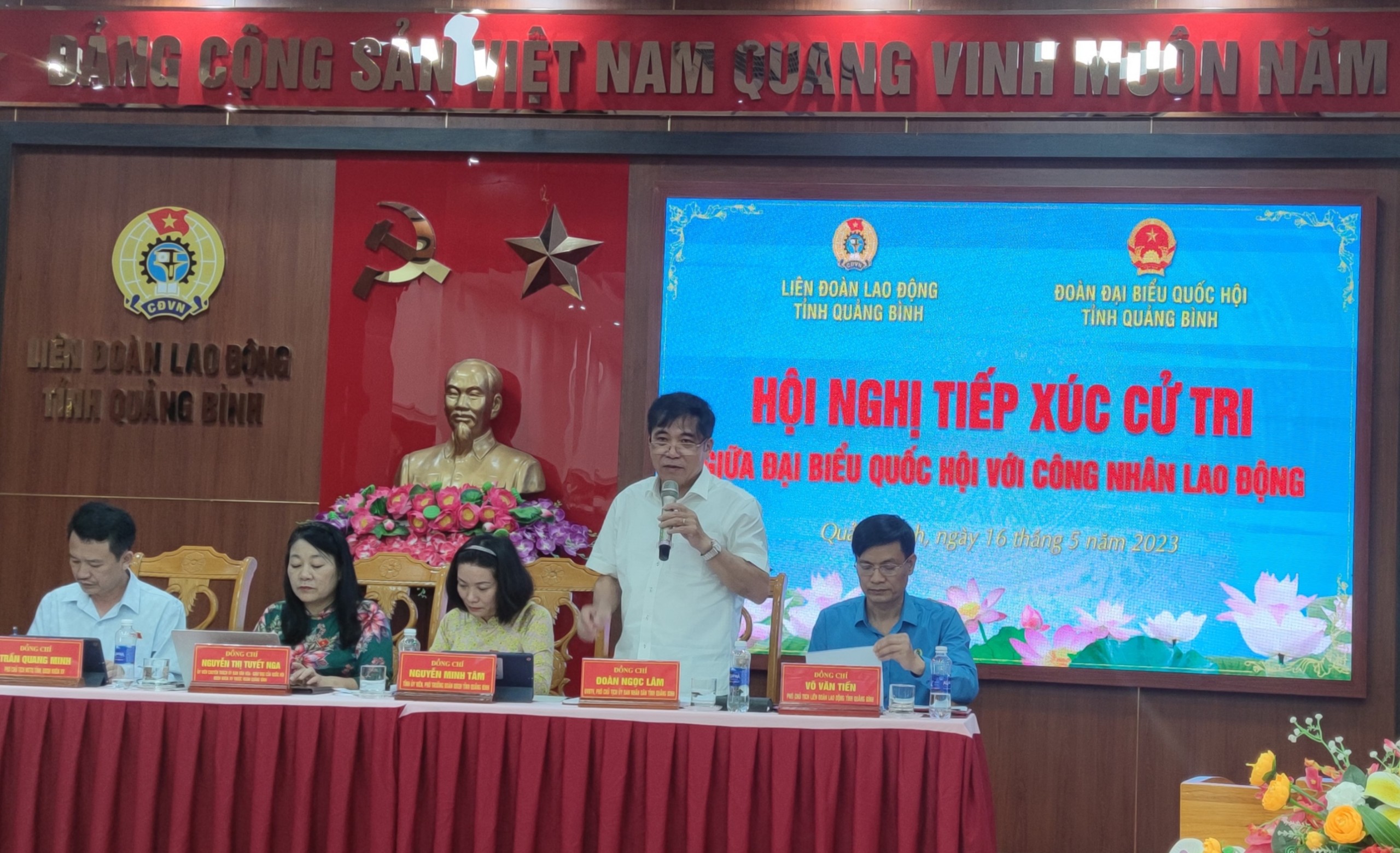 Thực hiện Kế hoạch của Đoàn Chủ tịch Tổng Liên đoàn lao động Việt Nam về việc tổ chức các hoạt động Tháng Công nhân năm 2023, sáng nay, 16/5, Ban Thường vụ Liên đoàn Lao động (LĐLĐ) tỉnh phối hợp với Đoàn đại biểu Quốc hội (ĐBQH) tỉnh tổ chức hội nghị tiếp xúc cử tri chuyên đề giữa ĐBQH với đoàn viên, người lao động (ĐV, NLĐ) trên địa bàn tỉnh.